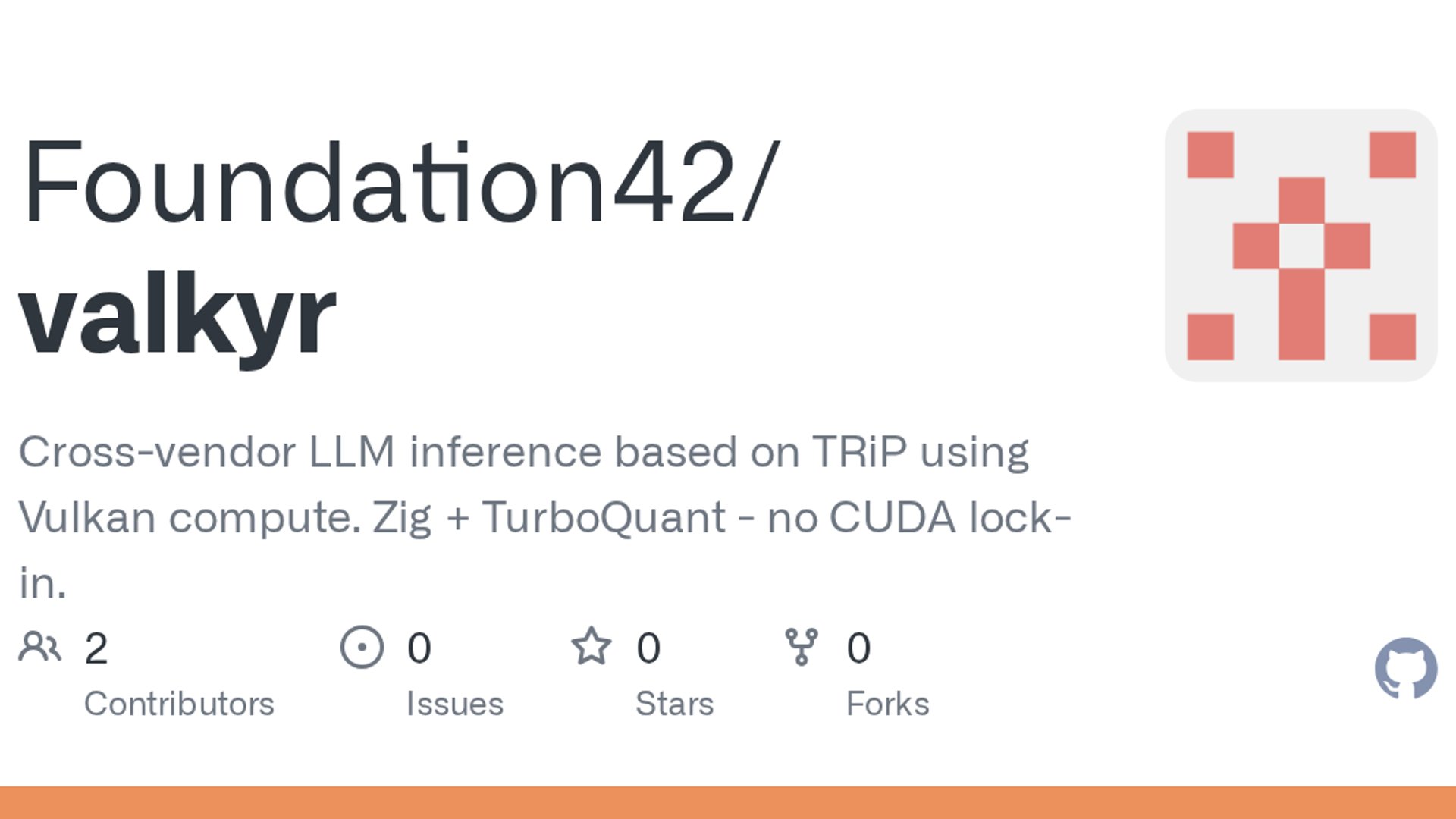 Valkyr is a cross-vendor LLM inference runtime ported from TRiP-style math into Zig with Vulkan compute shaders, aimed at running on AMD, Intel, NVIDIA, Apple via MoltenVK, and Android without CUDA lock-in. The new announcement says it now includes an optional TurboQuant path for KV-cache compression, with TQ4 V-cache support, bit-exact packing validation, and reported 120 tok/s on an RTX 3090 for Gemma 2B in the baseline path. The repo frames this as an open-source, vendor-agnostic runtime that preserves parity against HuggingFace and ships a practical Vulkan-first implementation rather than a research demo.