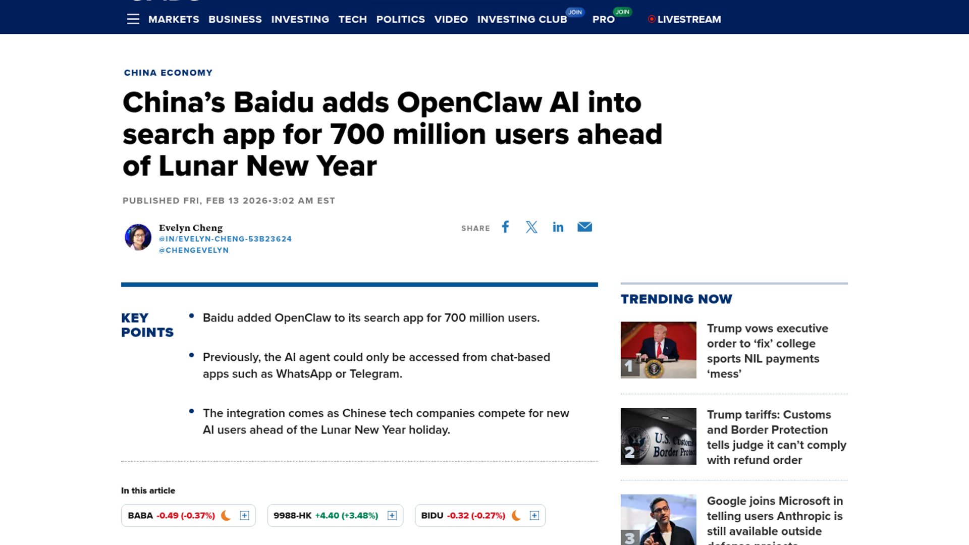 Baidu Search adds OpenClaw for 700M