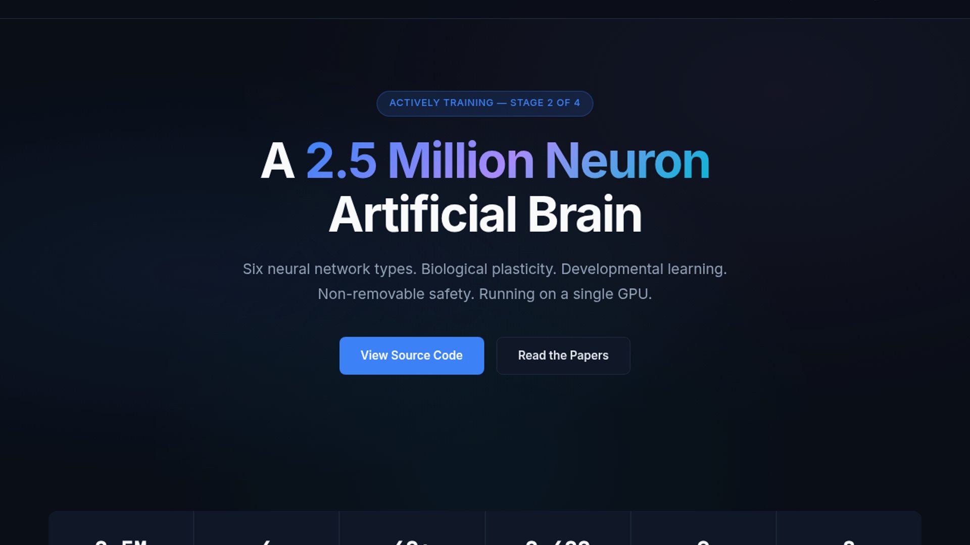 NIMCP is an open-source C codebase for a biologically grounded artificial brain that trains six network types in parallel and now shows live Stage 2 metrics on a 2.5-million-neuron system. It pairs developmental learning, robot and drone hooks, and non-removable safety gates with 240 Python APIs and eight language bindings.