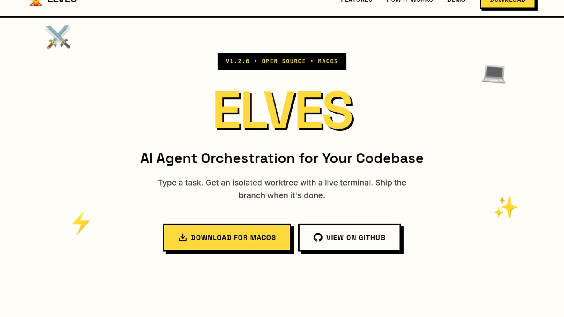 ELVES is a macOS desktop app for orchestrating coding agents in isolated git worktrees with shared memory and embedded terminals. It targets developers juggling Claude Code and Codex, giving them one place to spin up tasks, monitor execution, and ship finished branches.