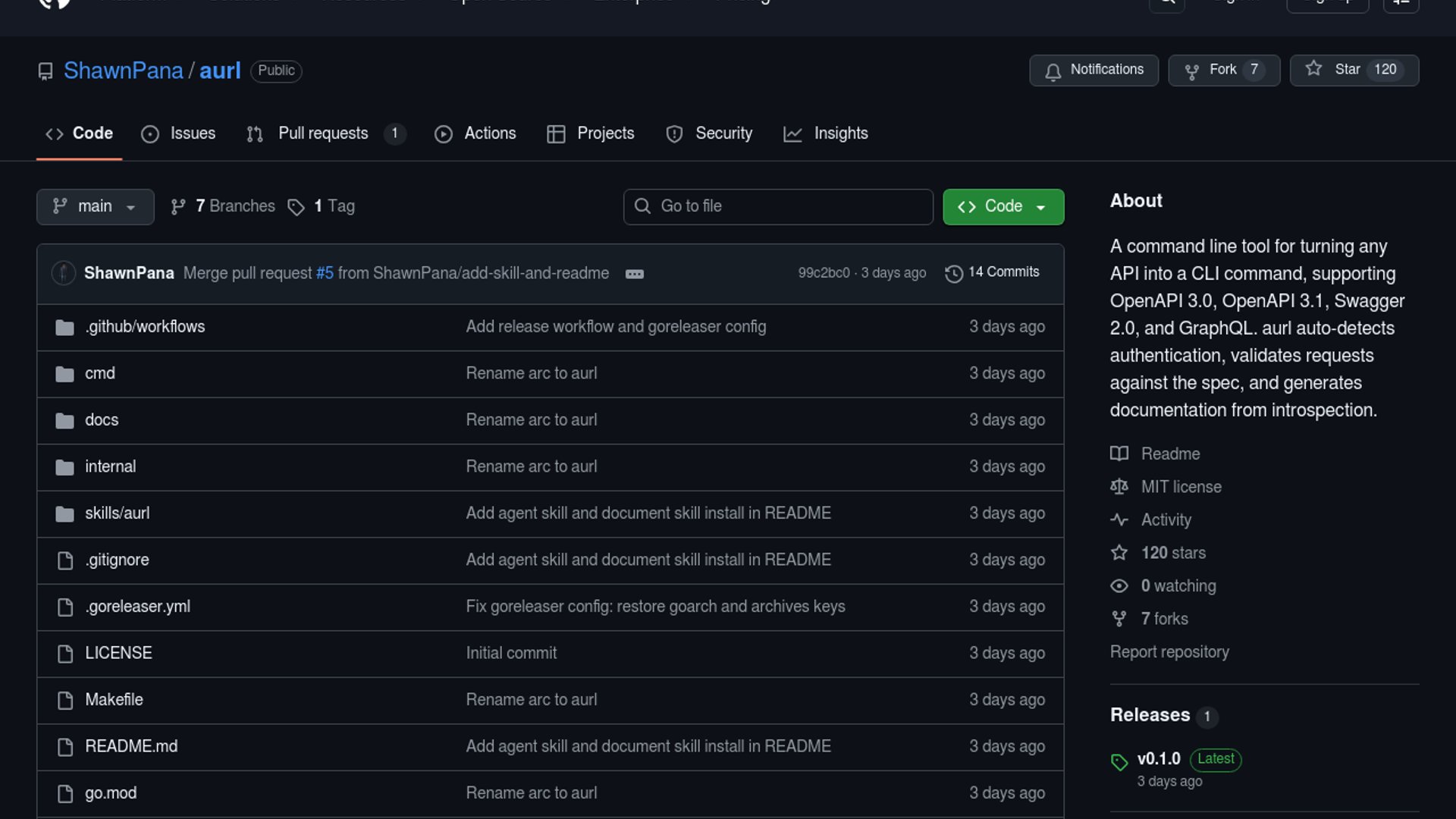 aurl is a Go-based CLI that turns API specs into typed commands for OpenAPI, Swagger, and GraphQL. It validates payloads before sending and can generate docs from GraphQL introspection, making APIs easier to use from both terminals and agent workflows.