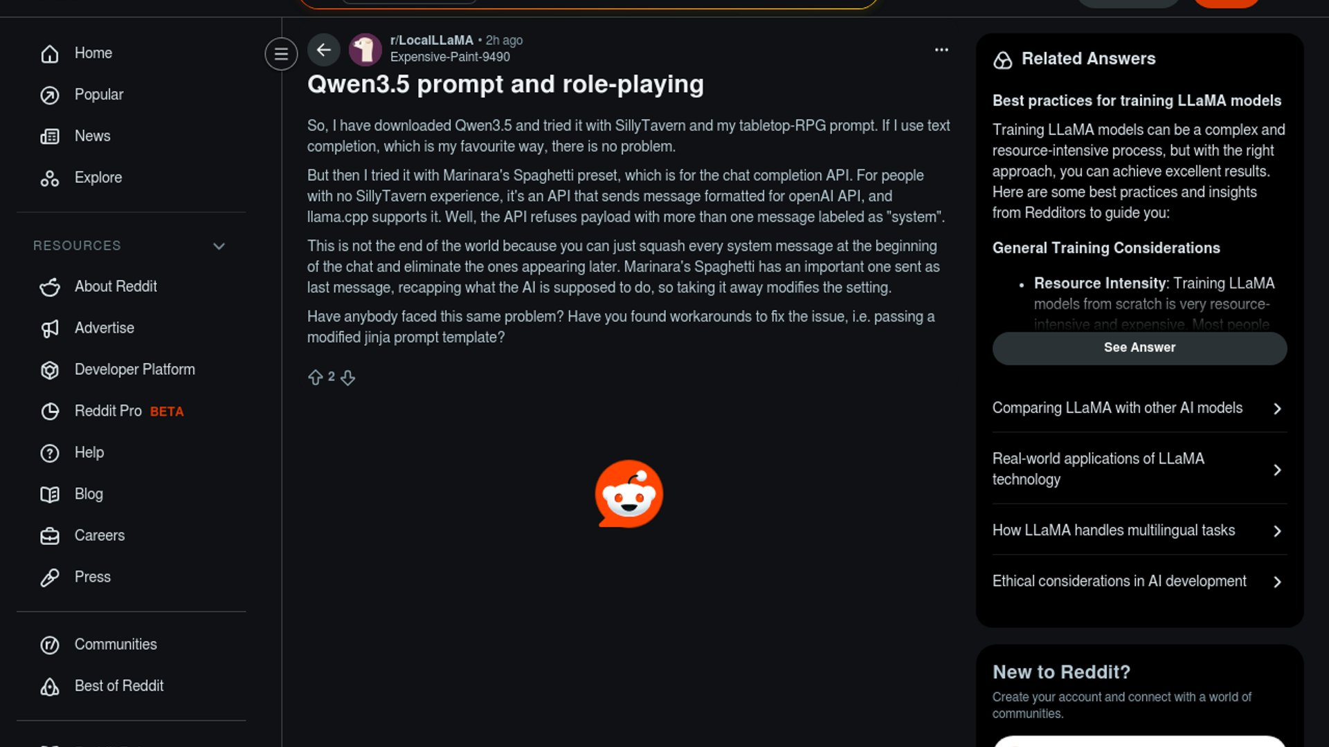 A LocalLLaMA user reports that Qwen3.5 works fine in plain text-completion mode but rejects SillyTavern chat-completion payloads containing multiple system messages via an OpenAI-compatible API stack. The issue looks less like a model failure and more like prompt-template and serving-layer friction between roleplay presets, llama.cpp compatibility, and Qwen’s chat formatting expectations.