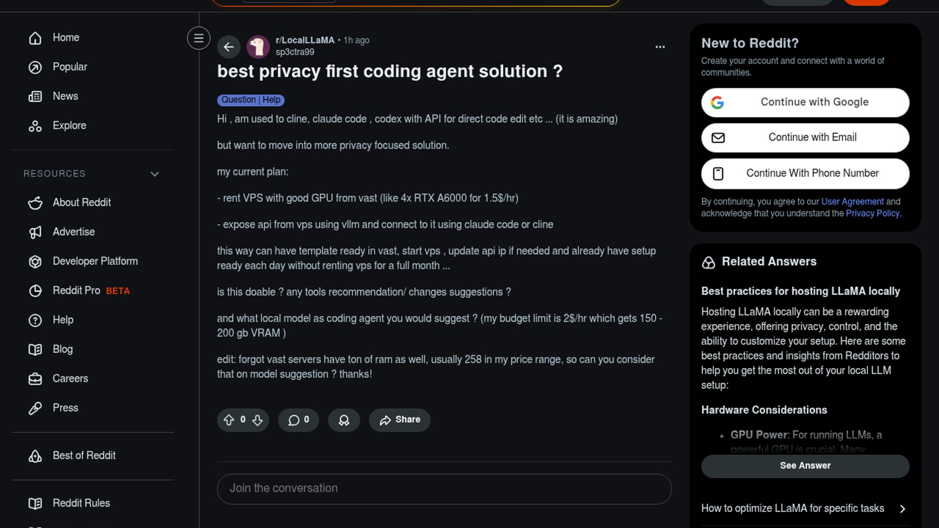 A LocalLLaMA user asks whether a Vast.ai GPU box, vLLM, and an editor agent like Cline or Claude Code can form a reusable privacy-first coding setup. The appeal is simple: keep code and prompts on your own endpoint, pay only when you need the hardware, and avoid a full-time hosted subscription.