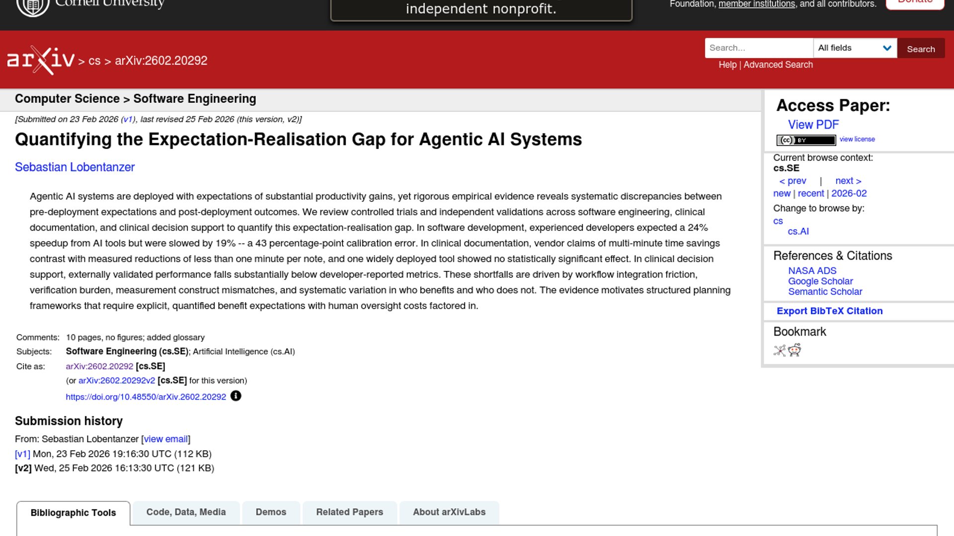 This paper reviews controlled trials and independent validations across software engineering, clinical documentation, and clinical decision support. Its core point is that agentic AI's promised productivity gains often vanish in real workflows: experienced open-source developers expected a 24% speedup but actually took 19% longer.