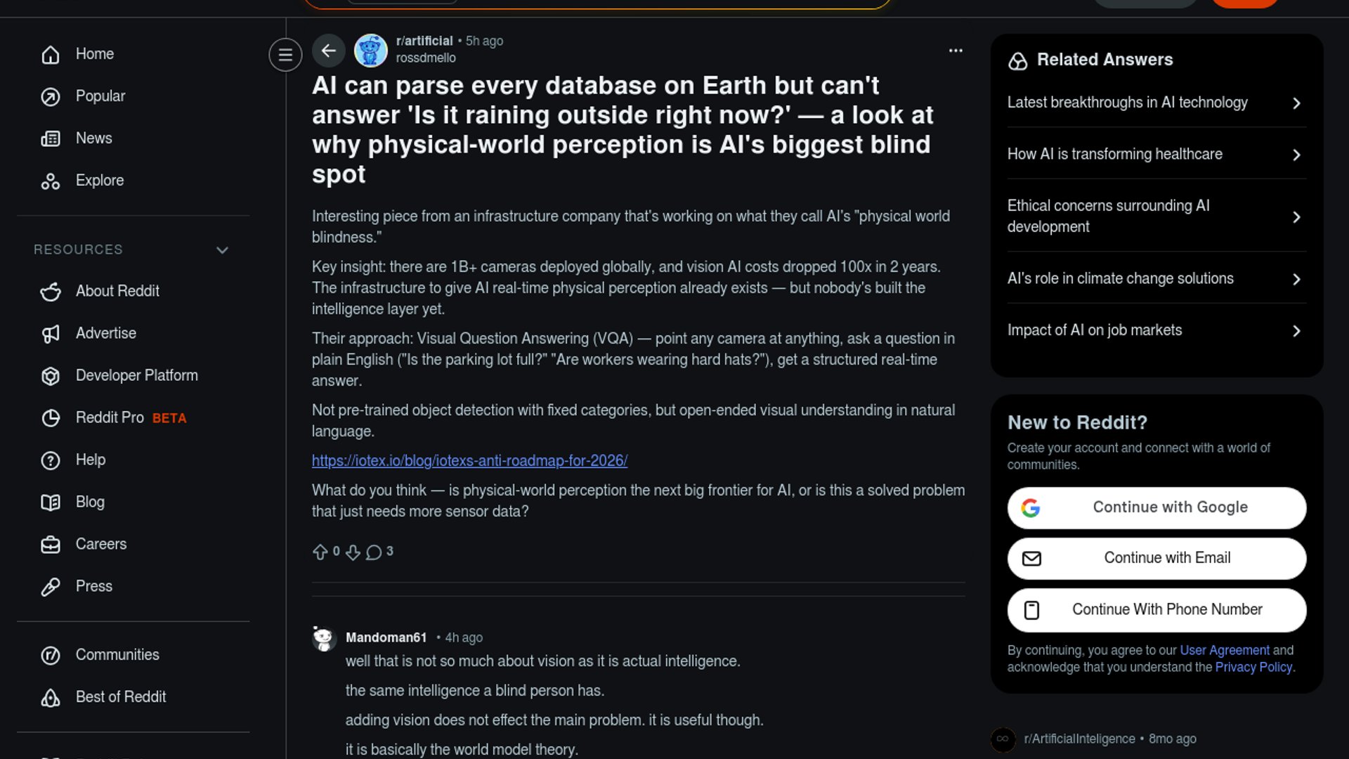 The interesting part here is not the philosophy-heavy roadmap critique — it’s the claim that falling vision costs and abundant camera infrastructure make physical-world AI commercially viable now. That puts IoTeX somewhere between AI infrastructure, IoT middleware, and crypto-native machine coordination, which is ambitious but still far from a solved market.