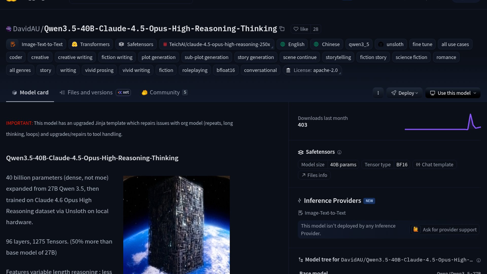 - –The core technical hook is a 40B dense Qwen3.5 variant with 96 layers and 1275 tensors, tuned on Claude 4.6 Opus reasoning data via Unsloth.