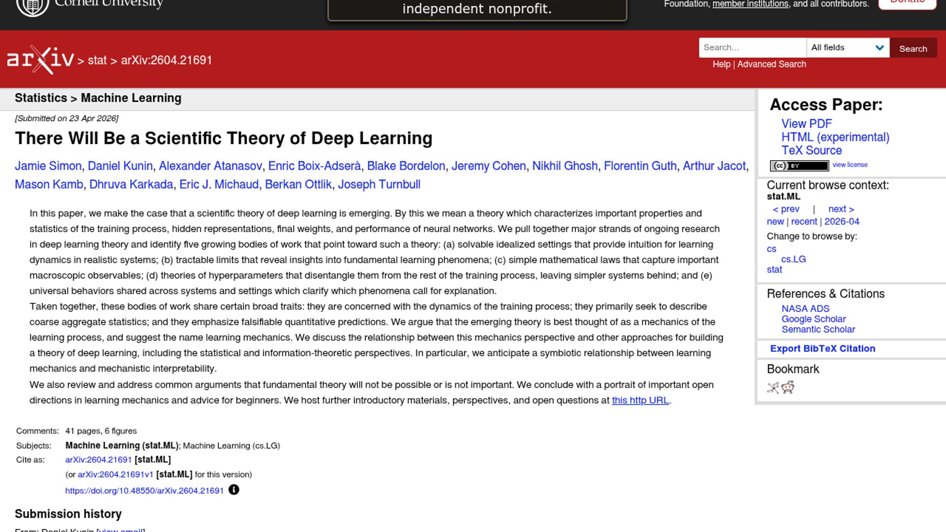- –This is not a finished theory, but it is a credible argument that deep learning research has crossed the threshold from empiricism-only into something closer to physics-style explanation.