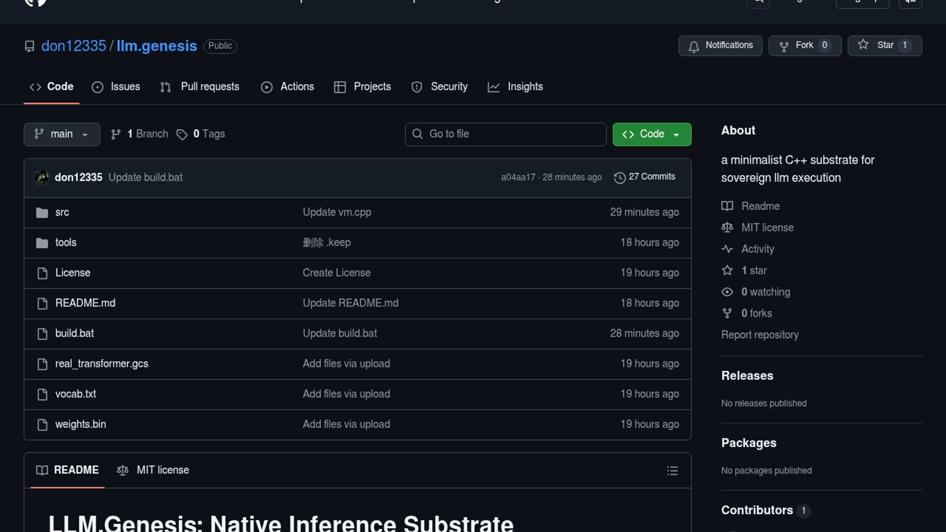 LLM.Genesis is a C++ inference engine that encodes model topology and forward-pass logic as GCS DNA, a custom binary instruction stream. It is built to stream weights on demand and generate deterministically inside a 64KB SRAM budget, targeting hardware where normal LLM runtimes would not fit.