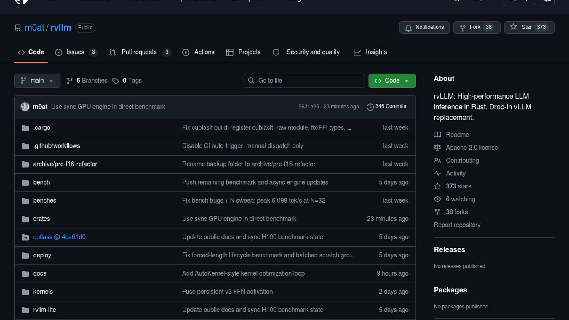 rvLLM is a from-scratch Rust rewrite of vLLM that aims to deliver high-throughput LLM serving with tighter control over kernels, memory, and startup behavior. The project positions itself as a drop-in alternative, with benchmark claims showing near-parity in some batch ranges while cutting image size and build complexity dramatically.
