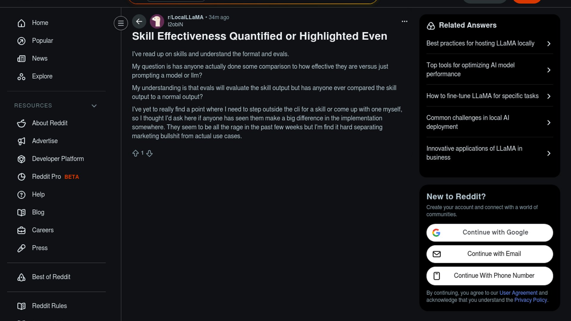 A LocalLLaMA user asks whether Claude Skills actually outperform plain prompting or just package the same instructions more neatly. The real issue is comparison quality: evals can show a skill works, but only side-by-side tests against a strong no-skill baseline prove it adds value.