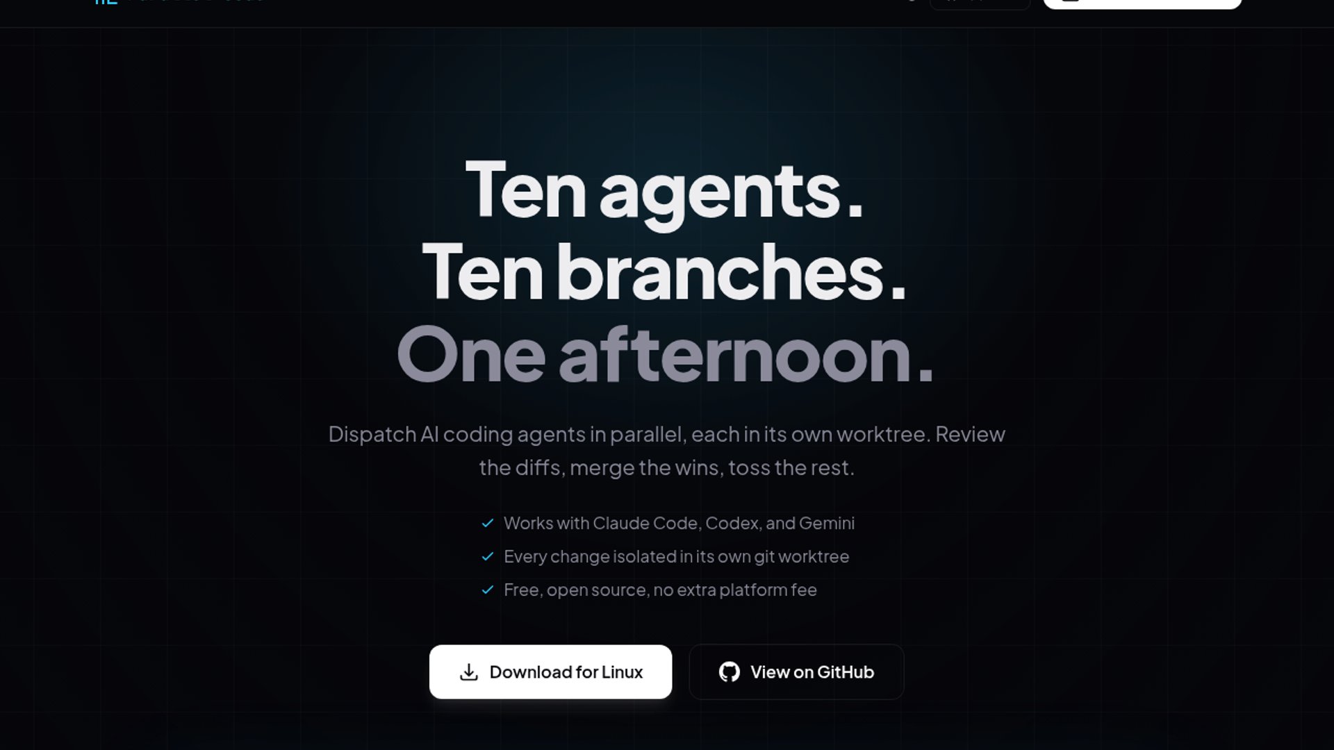 A macOS/Linux app that runs "fleets" of AI coding agents like Claude Code and Gemini CLI simultaneously in isolated git worktrees. This eliminates the waiting game of sequential AI task completion by allowing multiple concurrent task executions.