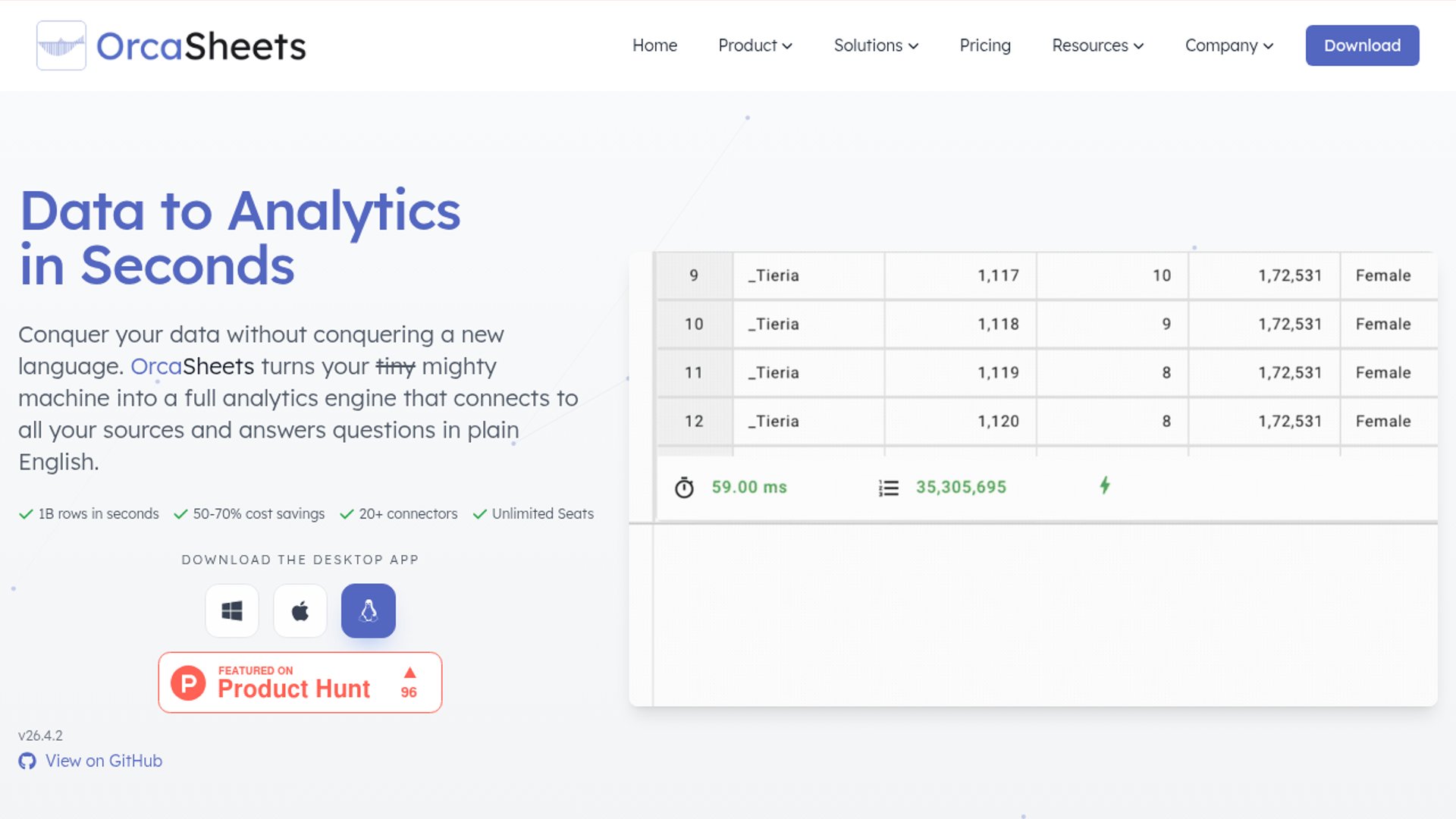 OrcaSheets is carving out a niche for privacy-first BI by proving that local processing beats cloud sampling for data accuracy.
