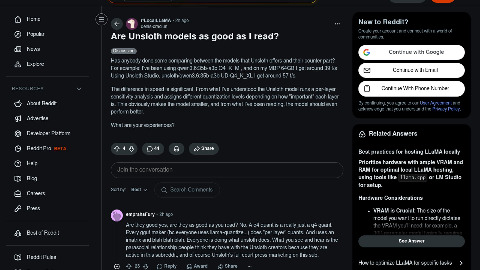 Unsloth’s dynamic quants use selective layer quantization, so the speed jump you saw is consistent with the product’s design. The quality story is more nuanced: some workloads stay very close to baseline, but “better” depends on the model, task, and quant scheme.