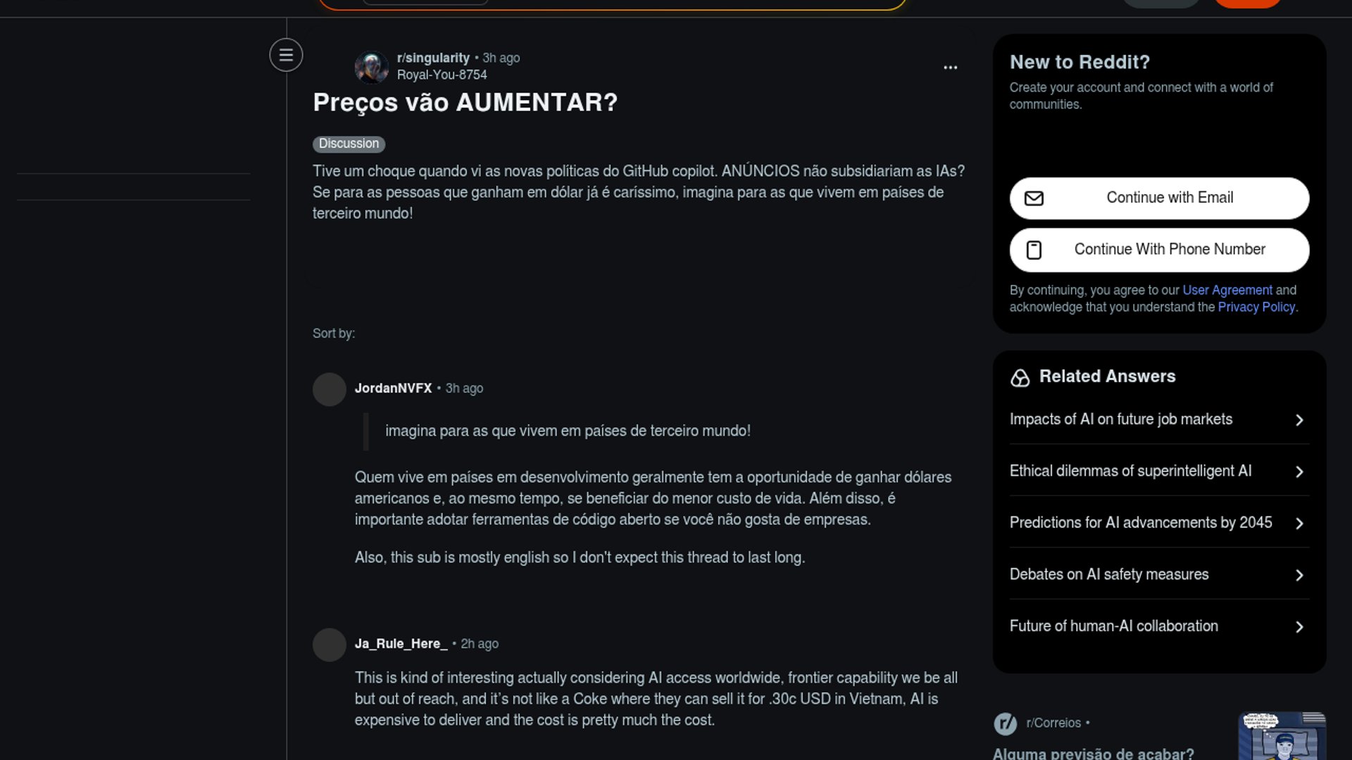 A discussão no Reddit reage à mudança mais recente do Copilot: a partir de 1º de junho de 2026, GitHub vai migrar todos os planos para cobrança baseada em uso, substituindo premium requests por GitHub AI Credits. Isso não significa, por enquanto, um reajuste direto de preço mensal para Pro e Pro+; os valores seguem em US$10 e US$39, mas o custo efetivo pode subir para quem usa recursos pesados ou modelos mais caros. GitHub também confirmou que interações de Copilot Free, Pro e Pro+ podem ser usadas para treinar e melhorar seus modelos desde 24 de abril de 2026, com opção de opt-out.