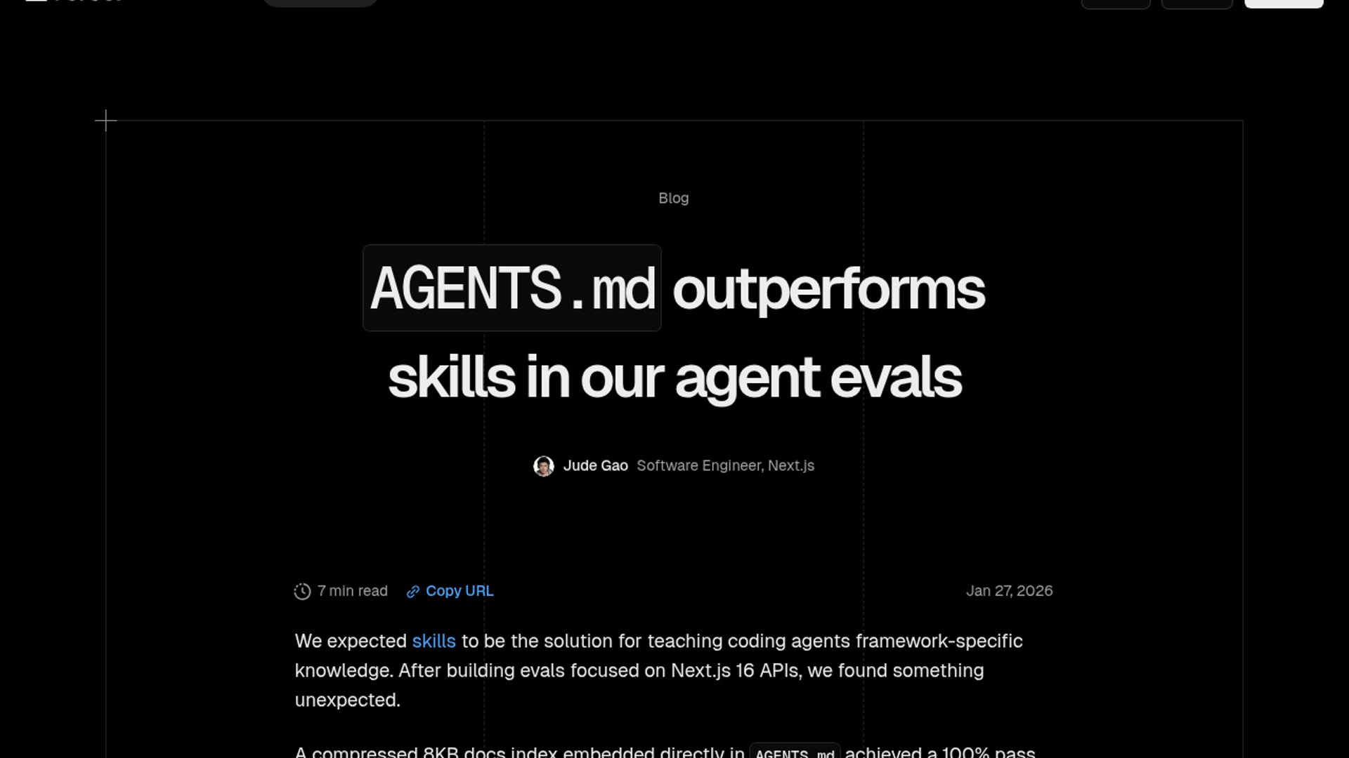 Vercel’s AGENTS.md beats skills in evals