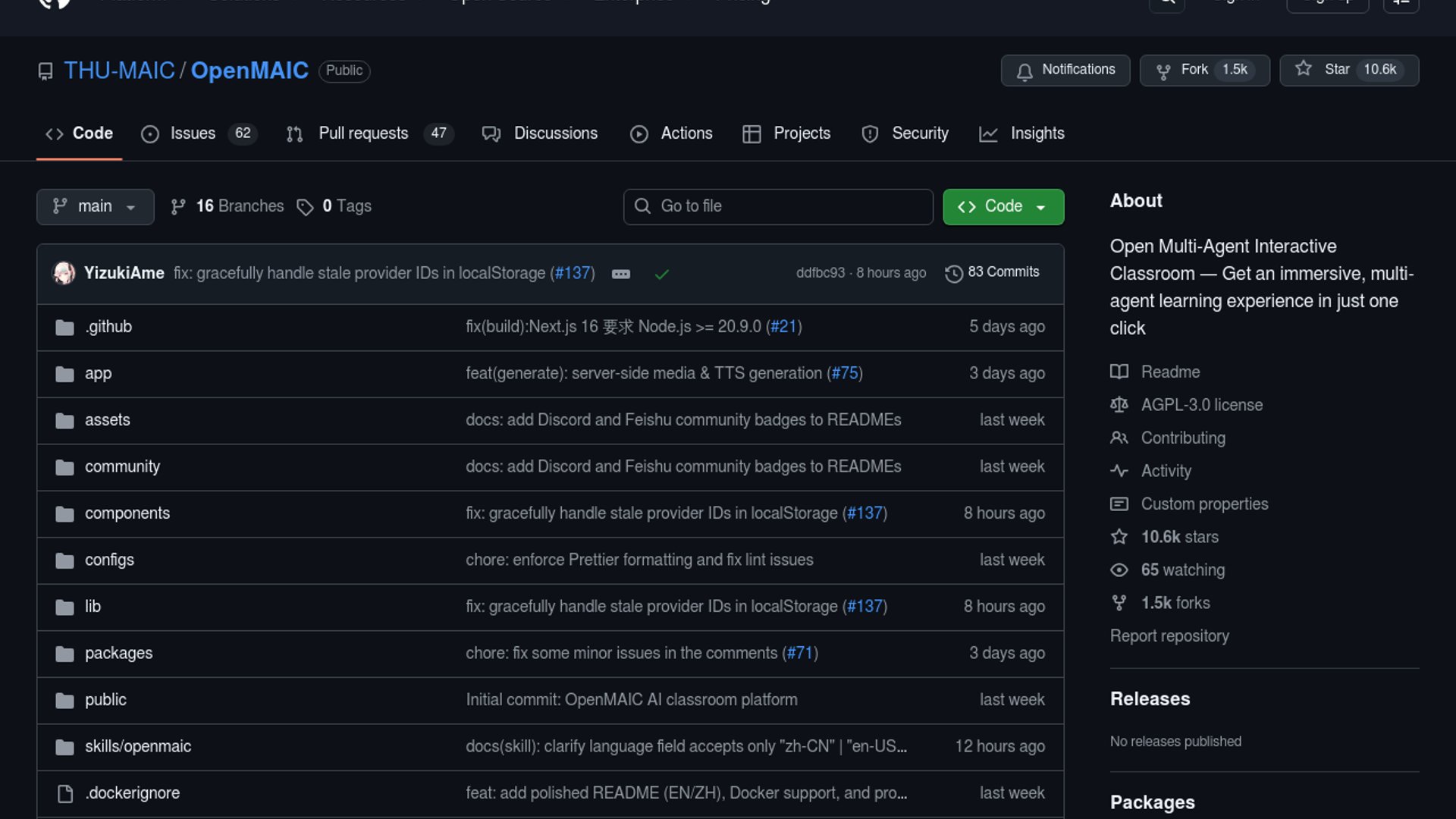 OpenMAIC is an open-source multi-agent interactive classroom that turns a topic or document into lessons, slides, quizzes, simulations, and live teaching interactions. It uses AI teachers and classmates to make learning feel like a guided session instead of a static content dump.