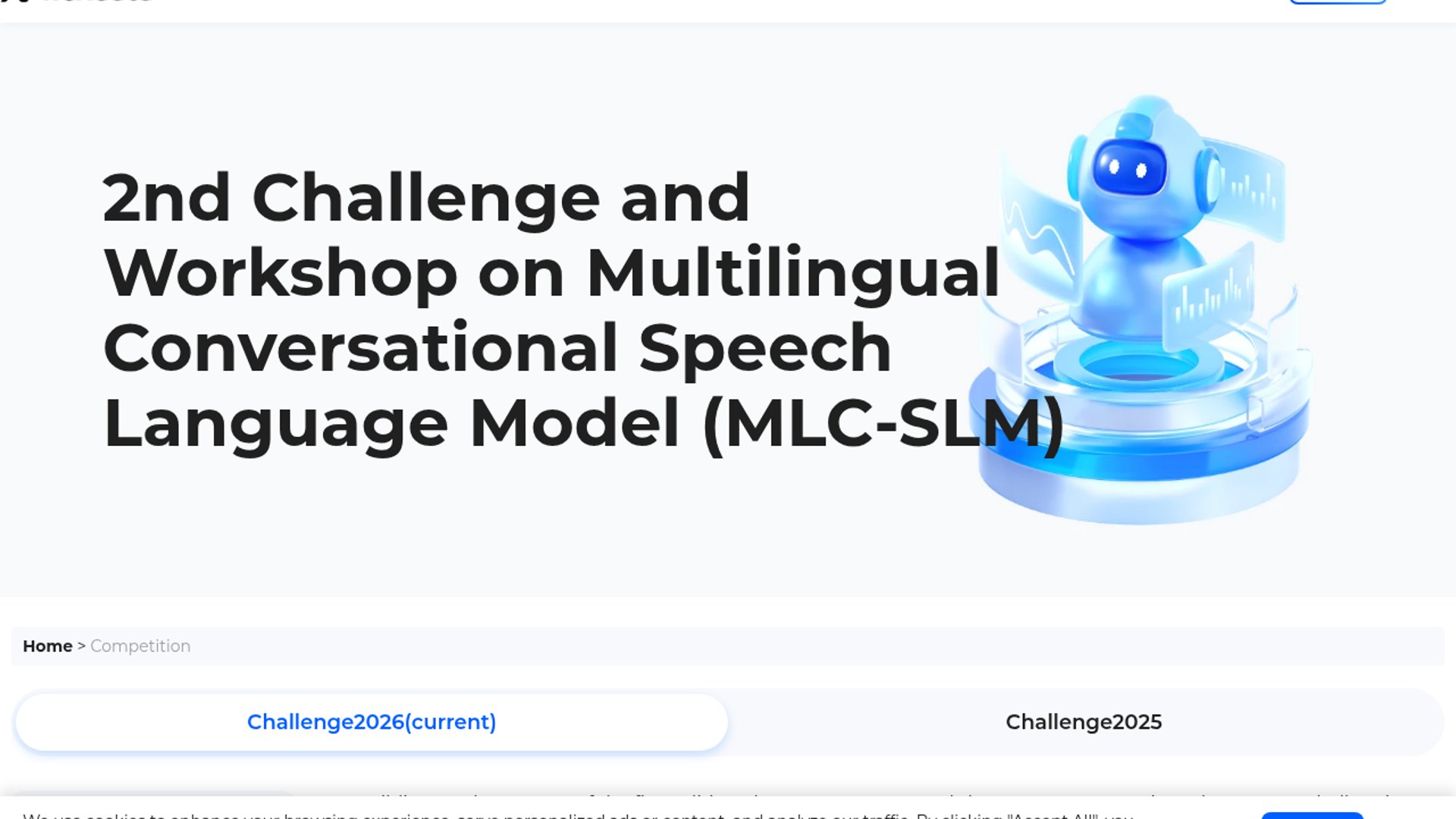 The 2nd MLC-SLM Challenge 2026 is open for free registration, with a $20,000 prize pool and a free multilingual conversational speech dataset for registered teams. It spans 14 languages, about 2,100 hours of audio, and two tracks: diarization/recognition plus multiple-choice speech understanding.