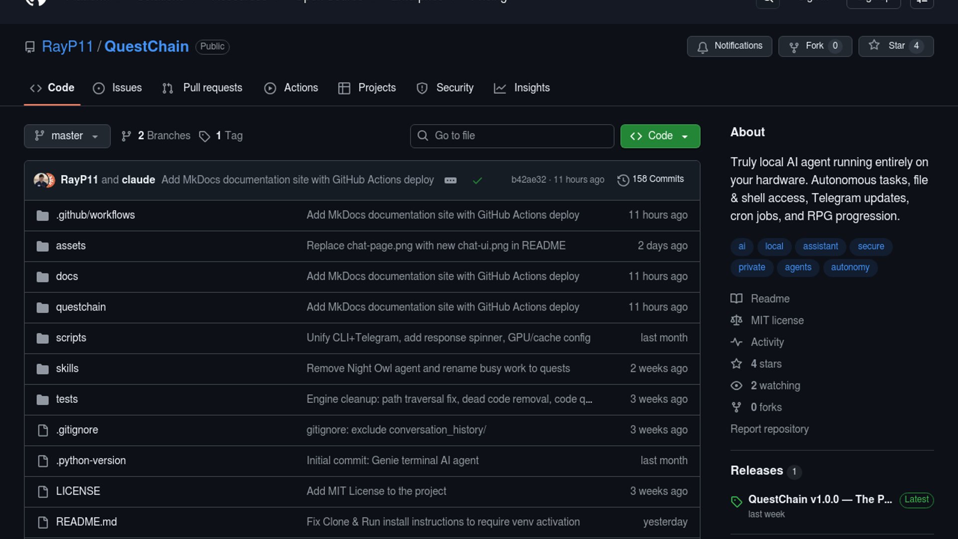 QuestChain is an open-source, local-first AI agent framework inspired by OpenClaw, built to run useful autonomous workflows on smaller models, starting around 3B parameters. It layers file and shell tools, web search, Telegram control, cron jobs, memory, and RPG-style progression onto a lightweight Python agent loop.