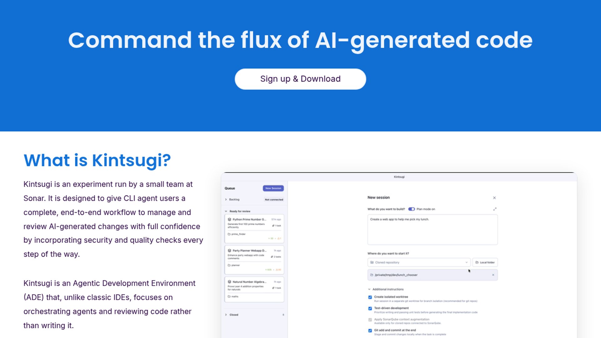 Kintsugi is Sonar’s experimental macOS Agentic Development Environment that adds a visual orchestration and review layer to Claude Code sessions, including diff review and integrated code-quality checks. The tool is positioned as a “workflow shell” around CLI agents rather than an IDE replacement, aimed at teams running parallel agent tasks without losing control.