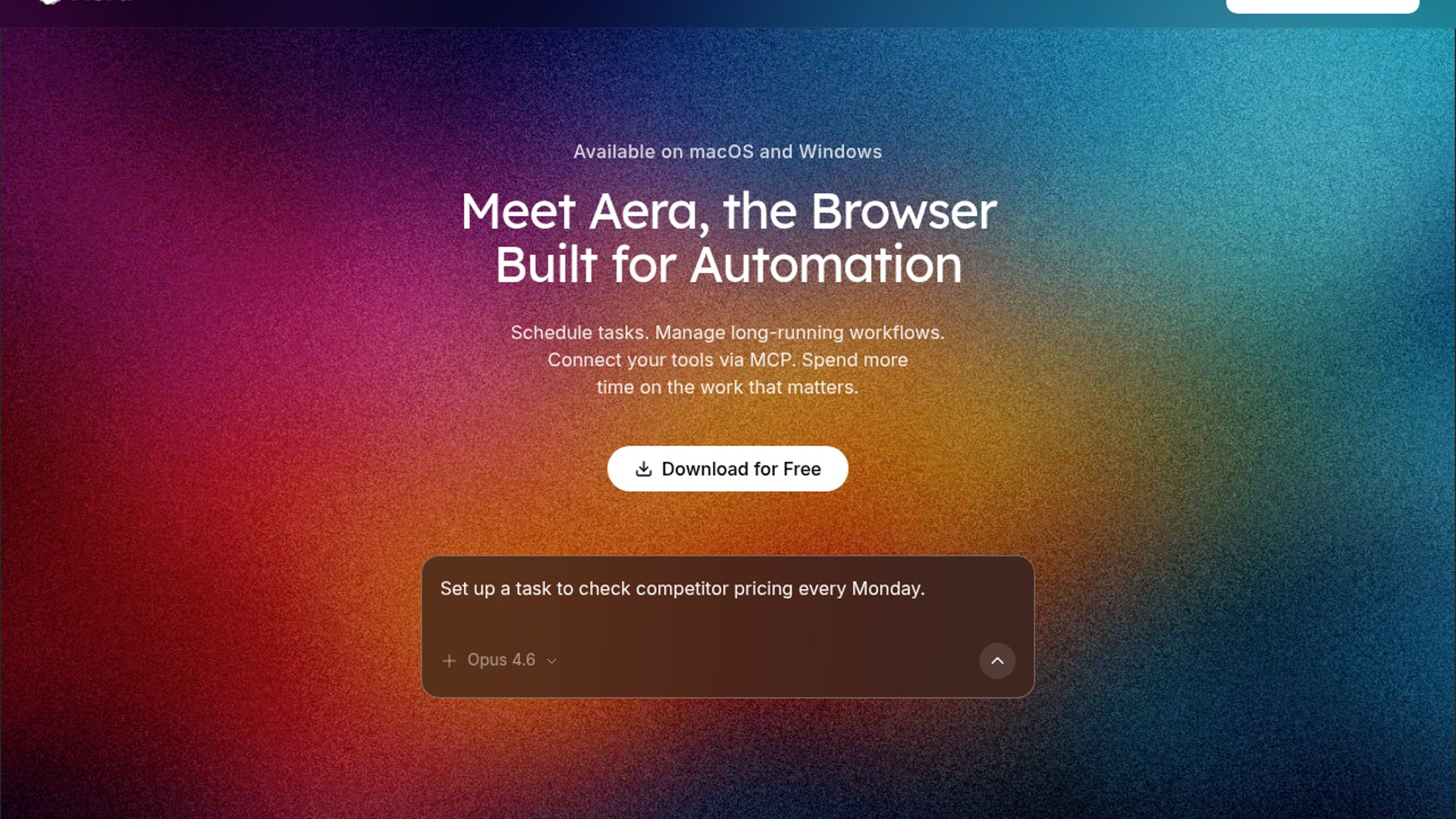 Aera Browser is a full browser with automation and MCP built in, designed to run recurring workflows across real sites instead of living as a sidebar chatbot. It clicks, types, navigates, and feeds results back into tools like Cursor and Claude Code.