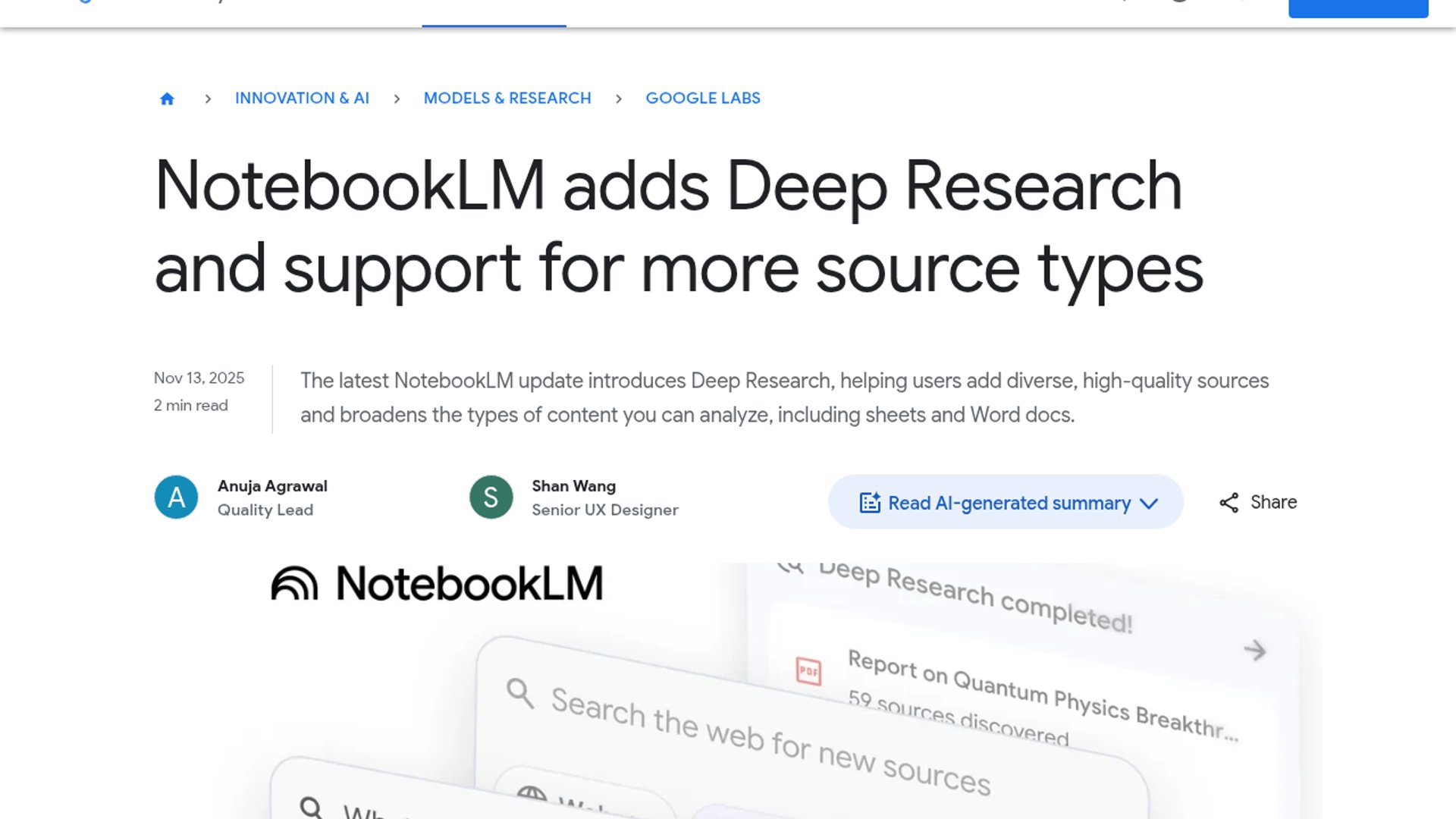 NotebookLM adds Deep Research, faster workflows