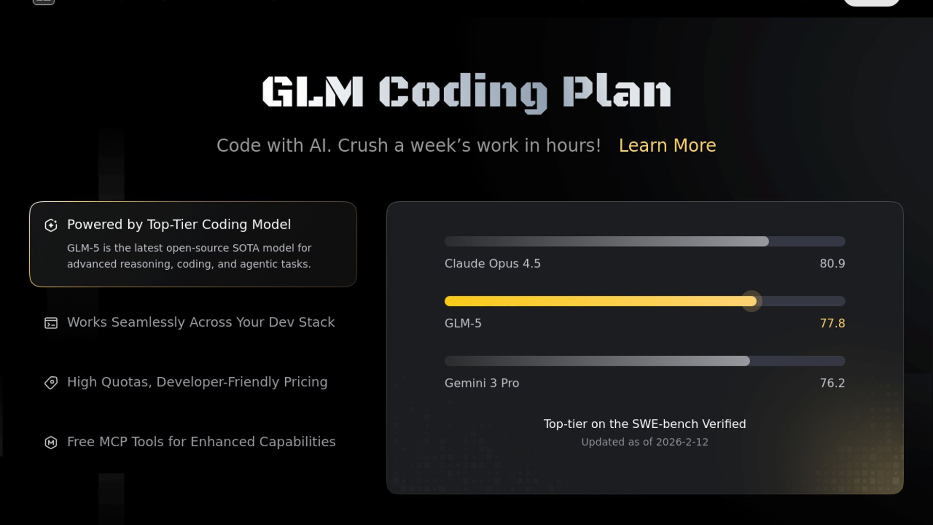 Z.ai positions GLM Coding Plan as a low-cost subscription layer for running GLM models in coding tools like Claude Code and Cline, with Lite starting at $3/month. The core pitch is practical AI coding workflows at much lower monthly cost than premium alternatives.
