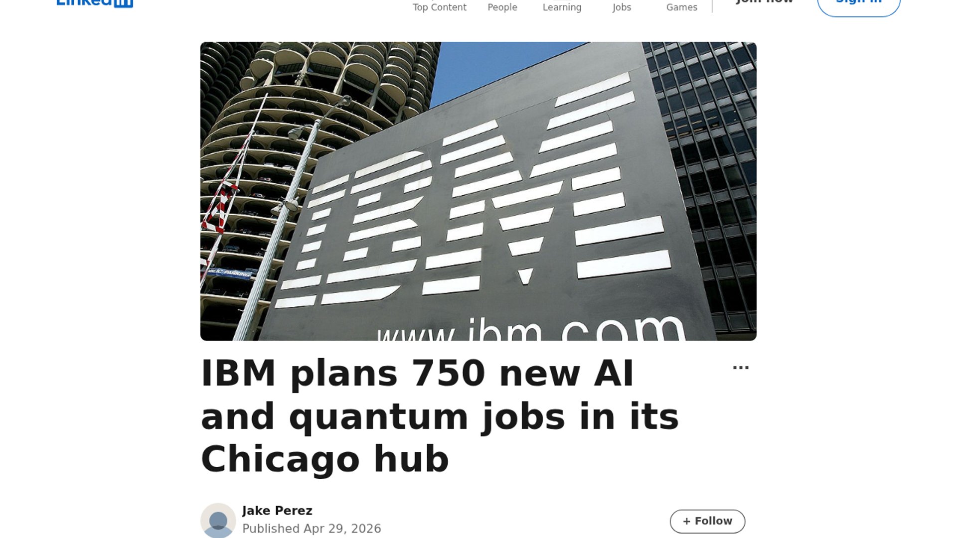 IBM is adding 750 roles over five years at the Illinois Quantum and Microelectronics Park in Chicago, spanning AI, quantum computing, cybersecurity, and data science. The push comes with $19 million in state tax credits and a new FutureNow Chicago center.