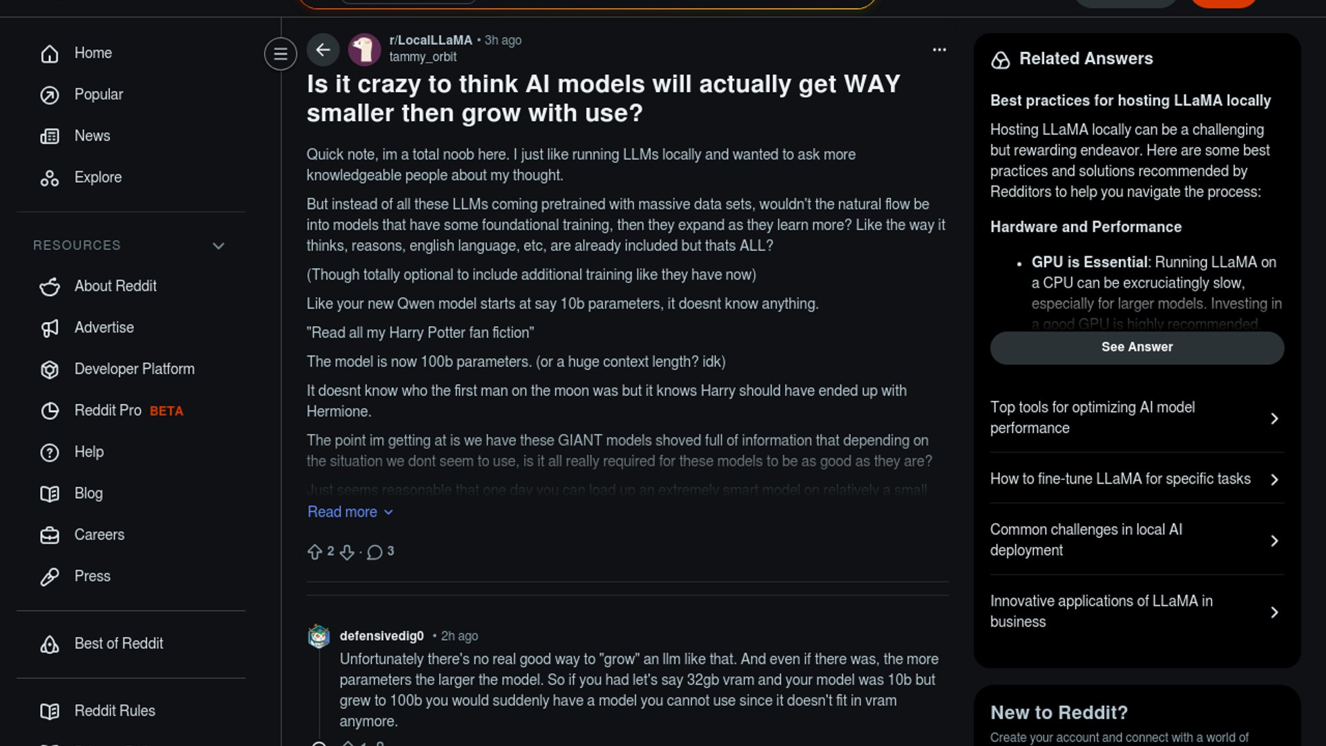 A r/LocalLLaMA post asks whether future AI models could start small and then expand their knowledge over time instead of being pretrained with massive weight counts. The thread frames the real question as whether capabilities should live in the model weights at all, or mostly in external memory, retrieval, and fine-tuning.