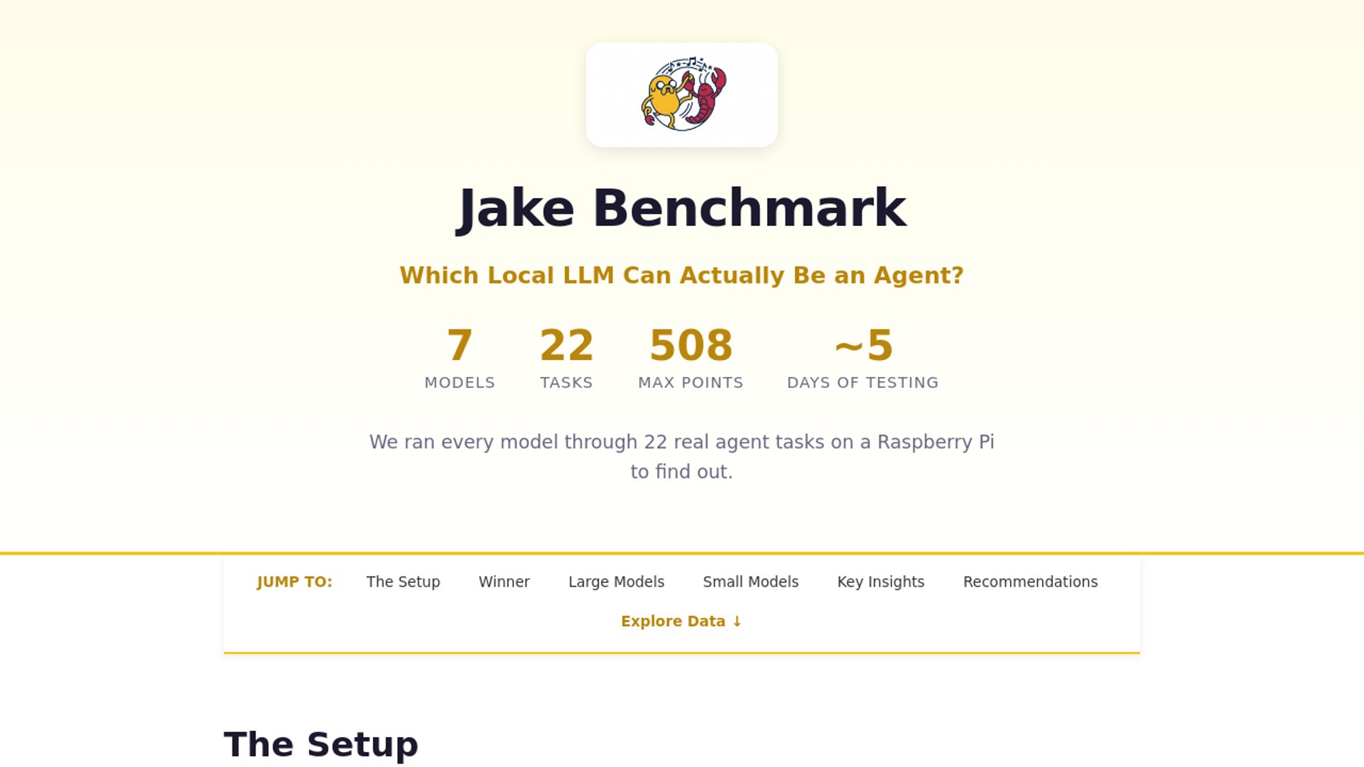 Jake Benchmark v1 ran 7 local models through 22 real agent tasks on OpenClaw and Ollama, using a Raspberry Pi 5 and an RTX 3090. Qwen3.5:27b-q4_K_M won decisively at 59.4%, while the 35B runner-up stalled at 23.2% and the rest mostly flopped.