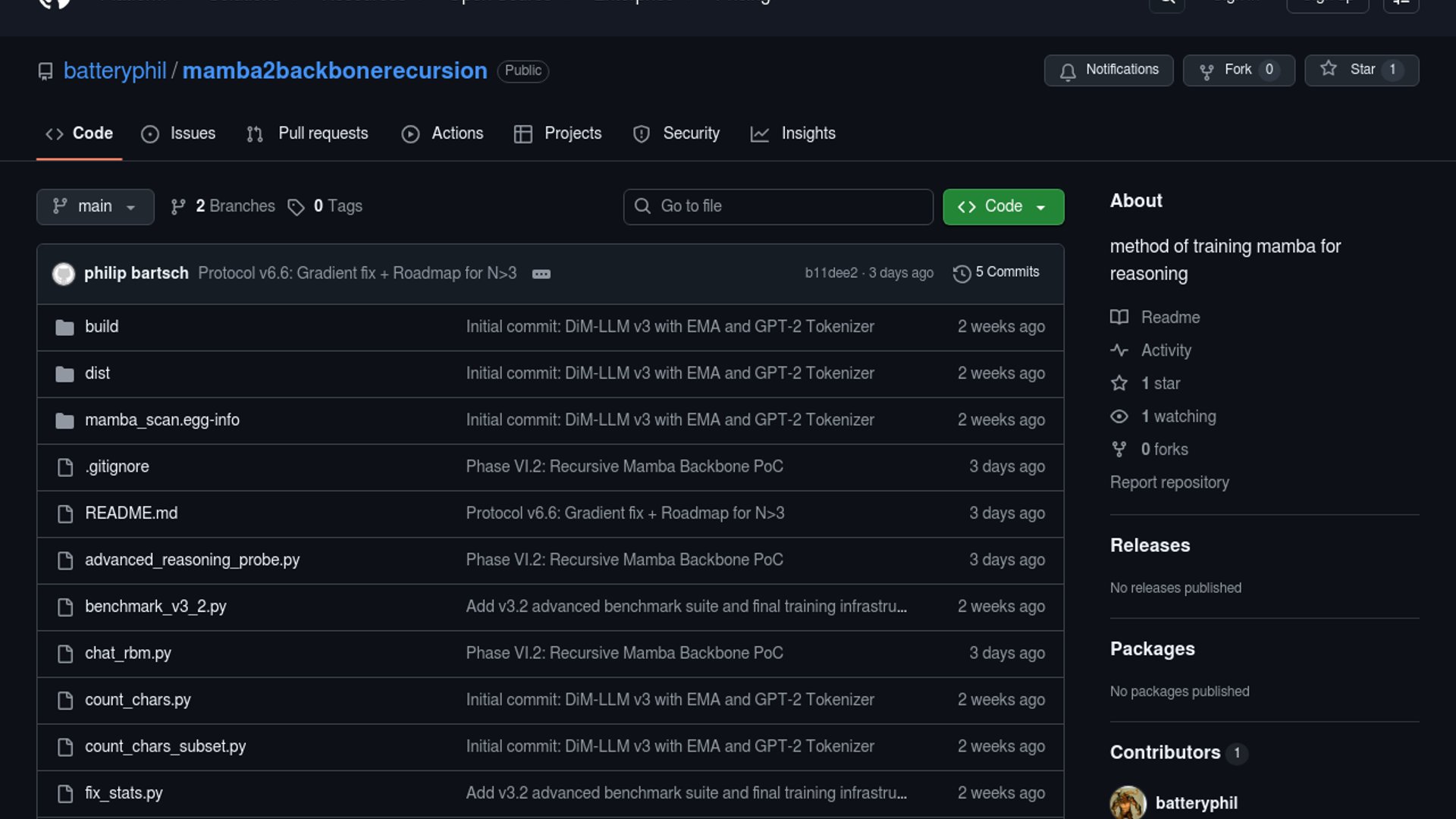 The repo behind this Reddit update is a proof-of-concept Recursive Mamba model that loops hidden states for multi-step reasoning. The latest post says it has been rebuilt around a frozen `mamba-130m` backbone plus a small trainable reasoning head, but deeper recursion is still only partially validated.