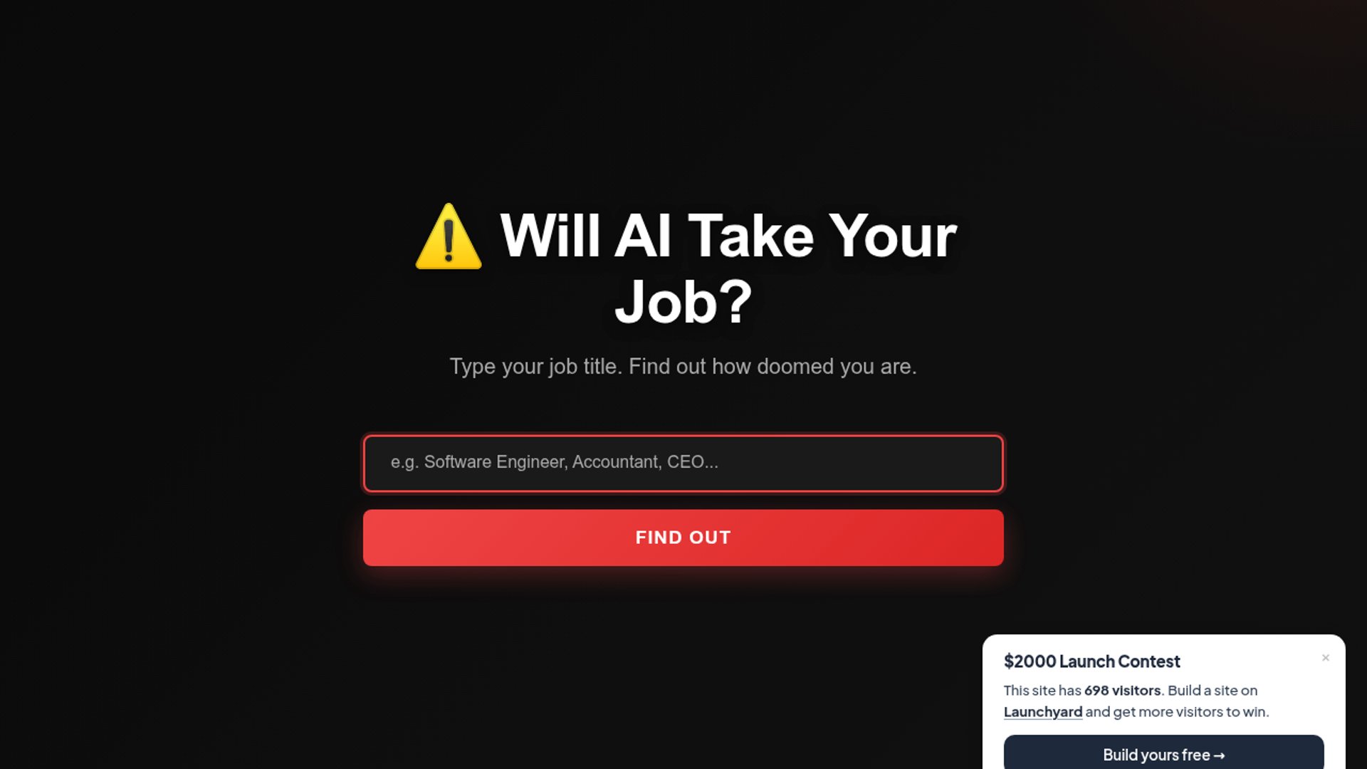 Replaced by AI is a viral web application built on the Launchyard platform that uses labor study data from Anthropic and OpenAI to calculate your automation risk. The tool gained significant traction by turning widespread job anxiety into a humorous, data-driven interactive experience.