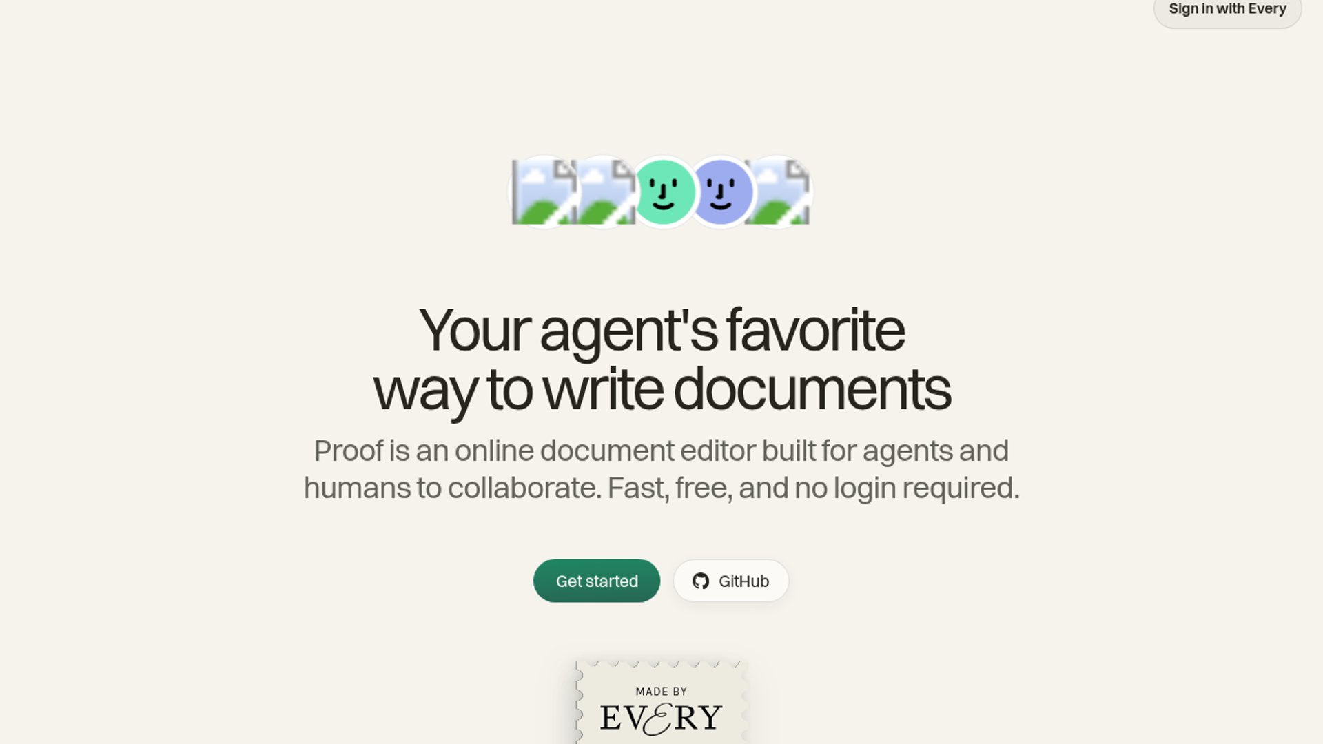 Proof is an online document editor built for humans and agents to collaborate in the same shared workspace. The product emphasizes agent-friendly workflows such as live comments, suggestions, provenance, and shareable docs, positioning itself as a new kind of productivity app designed around AI-assisted drafting and review rather than retrofitting chat onto traditional documents.