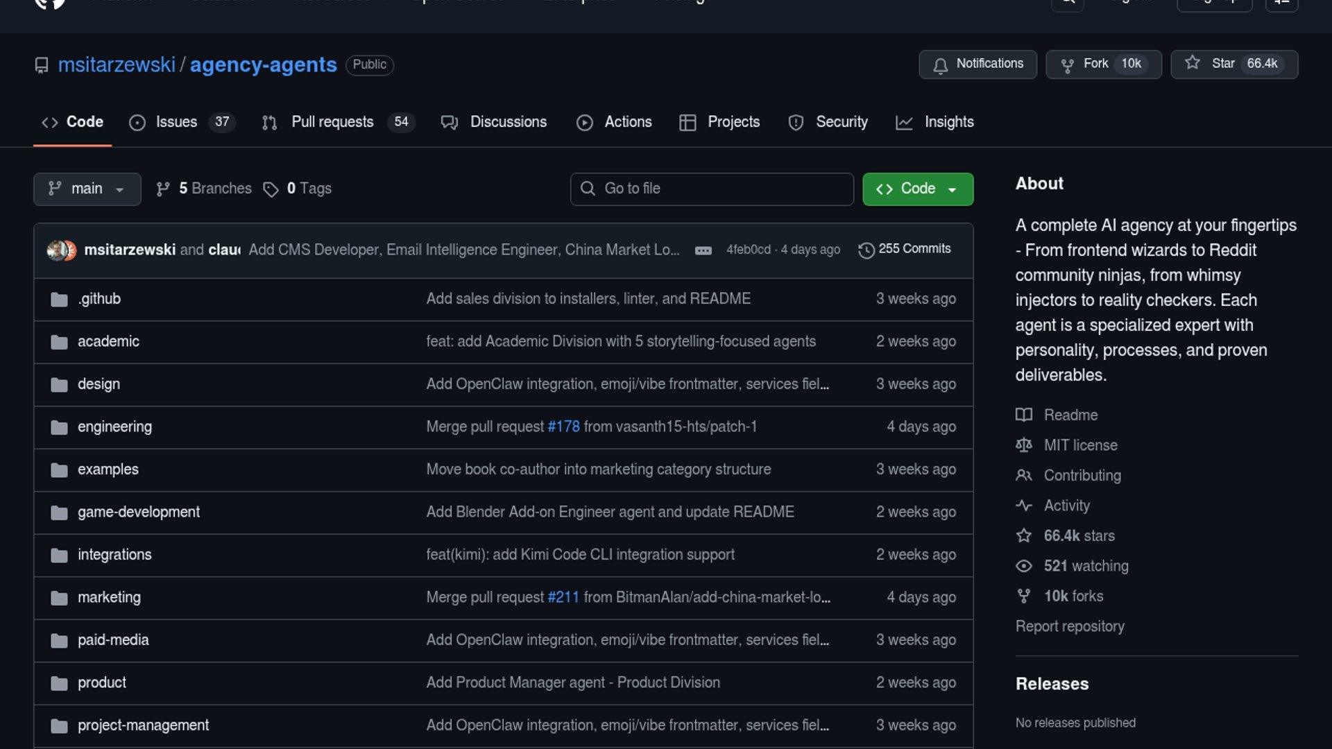 Agency hits 66k stars with specialized AI roles