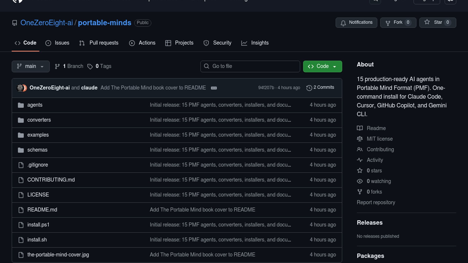 Portable Mind Format (PMF) is an MIT-licensed open-source JSON specification for defining AI agents in a provider-agnostic way, with fields for identity, voice, values, knowledge, skills, and security. The repo ships 15 production agents, a schema validator, and converters for Claude Code, Cursor, GitHub Copilot, and Gemini CLI, so the same agent definition can be adapted across model ecosystems without rewriting the core persona. Its core idea is that a prompt says what to do, while PMF defines who the agent is.