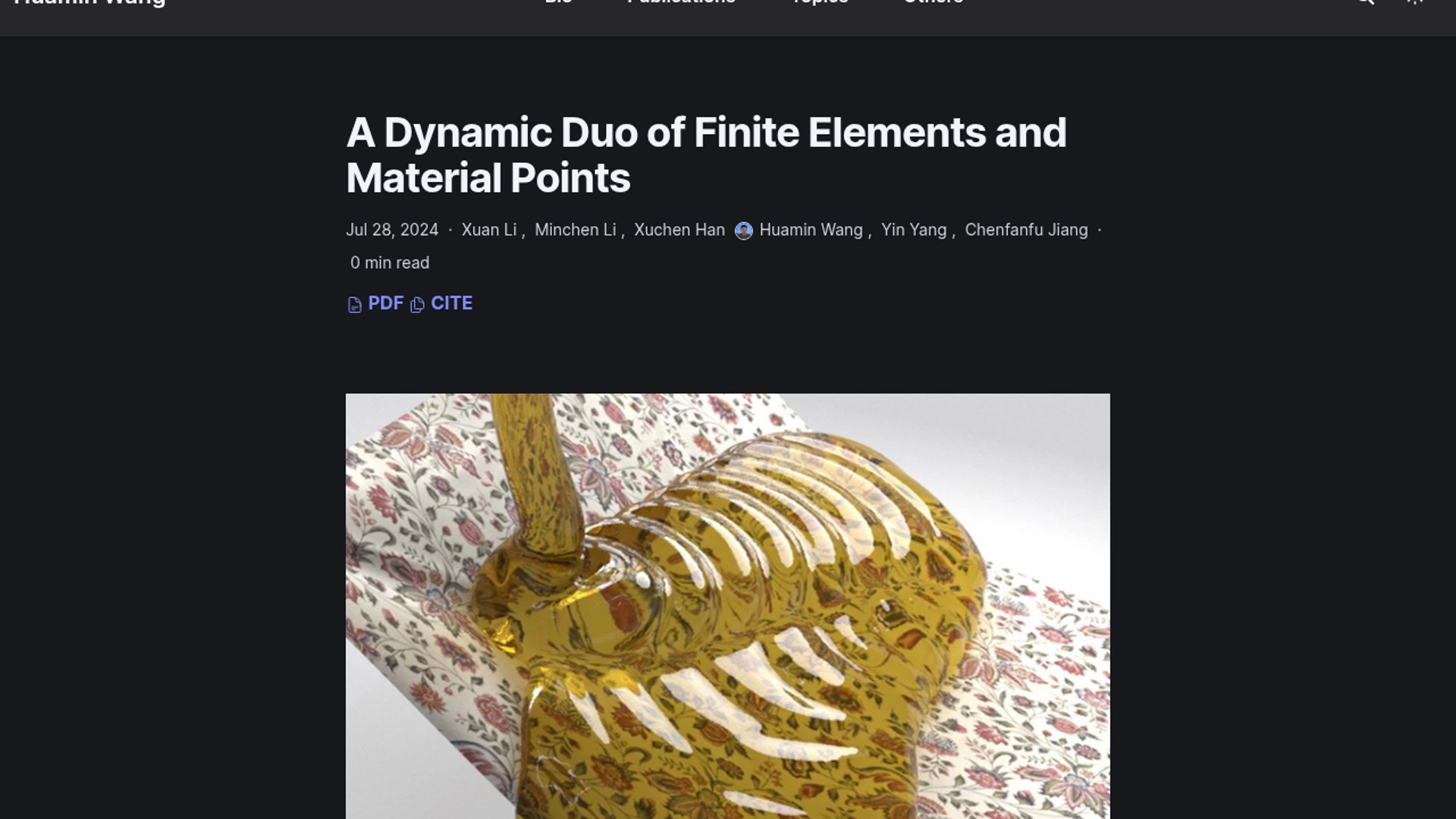 Presented at SIGGRAPH 2024, Dynamic Duo introduces an asynchronous IMEX framework that couples implicit FEM with explicit MPM while preserving two-way frictional contact through IPC. The result is more robust multi-material simulation across cloth/thin structures, rigid and elastic bodies, fluids, and granular media with fewer penetration and instability breakdowns.