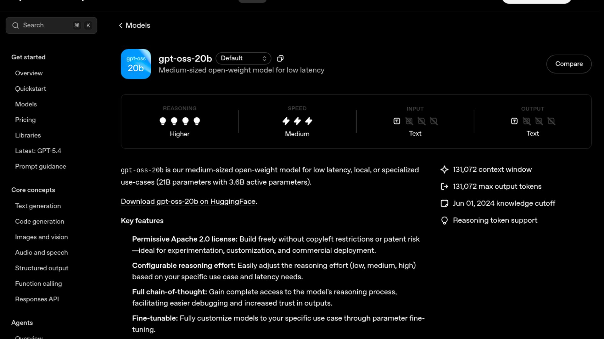 - –OpenAI positions it as a medium-sized open-weight model for low-latency use, and it’s designed to run on relatively modest hardware.
