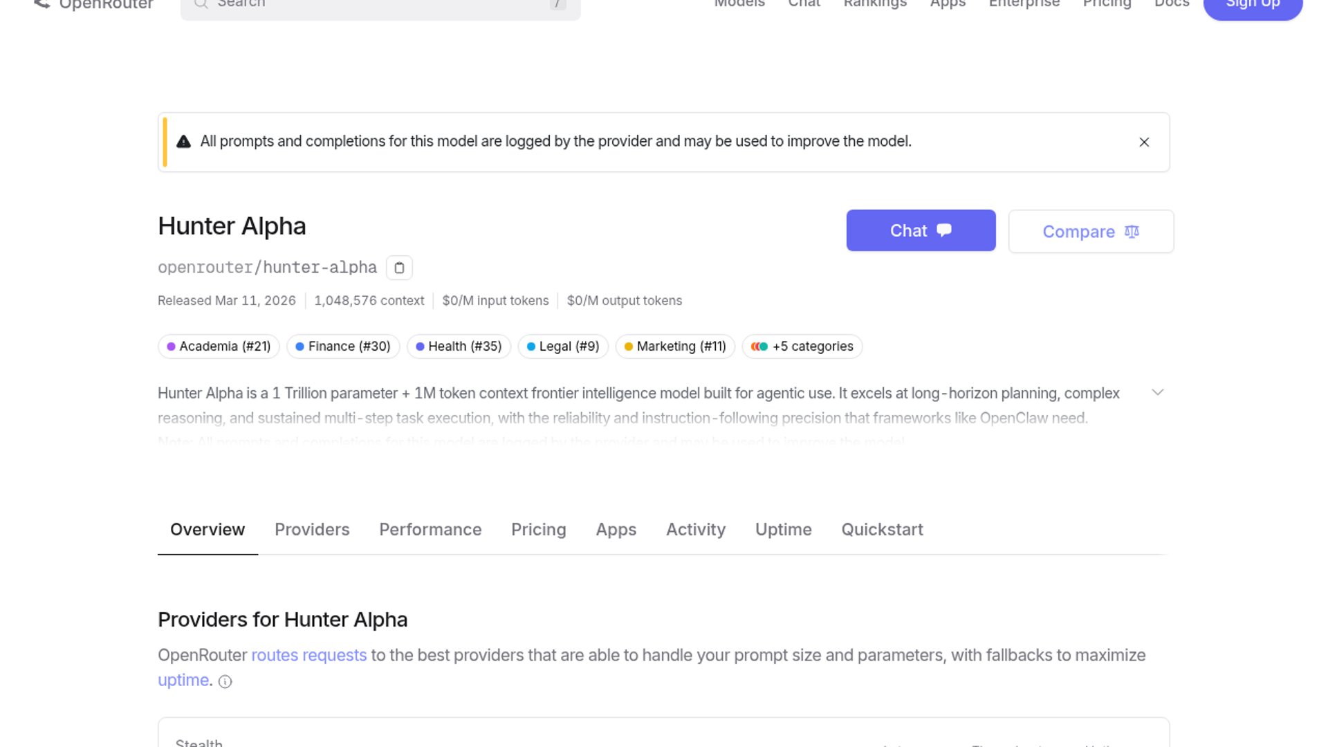 - –Healer Alpha's omni-modal architecture (text + image + audio + video in) is rare at this access tier; 7.1M requests and 40.5B prompt tokens logged in a single day signals massive developer uptake