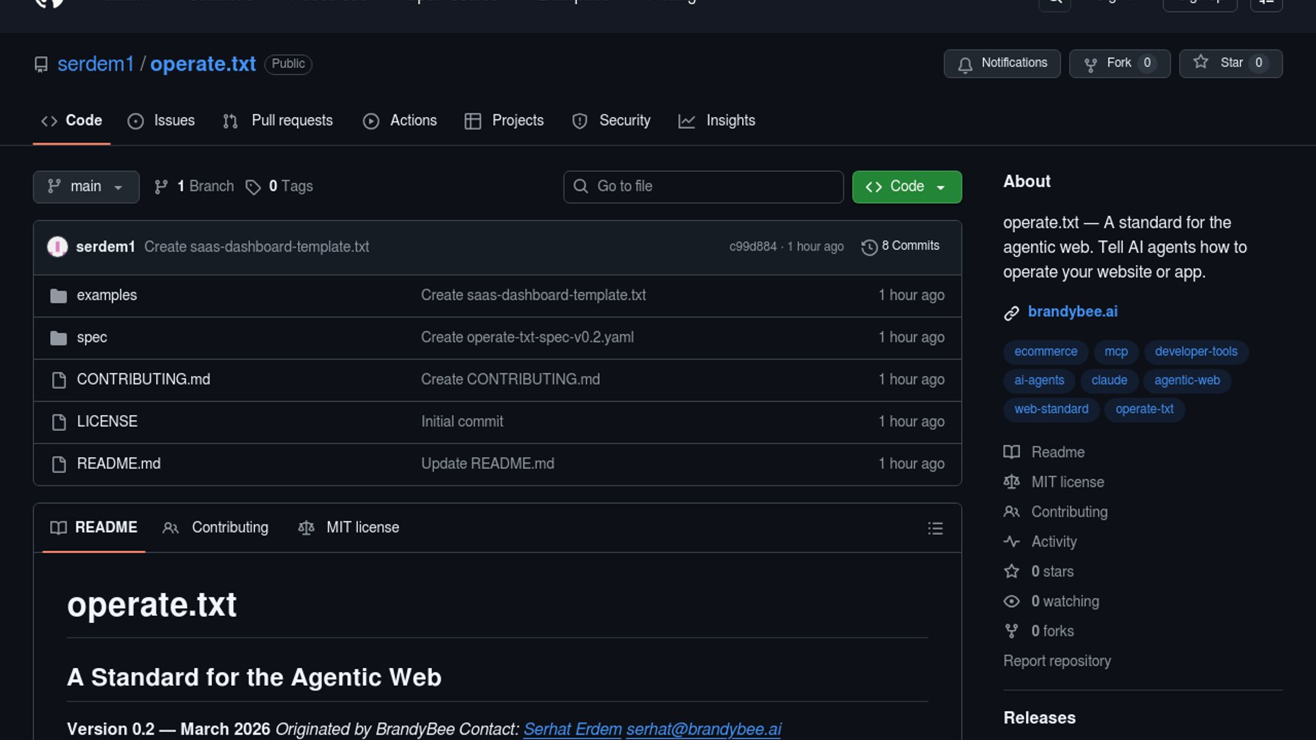 operate.txt is an open-source spec for a yourdomain.com/operate.txt file that explains how an application actually behaves for AI agents. The GitHub repository focuses on the messy parts that trip up browser agents, including loading states, async workflows, form dependencies, irreversible actions, recovery paths, and permissions.