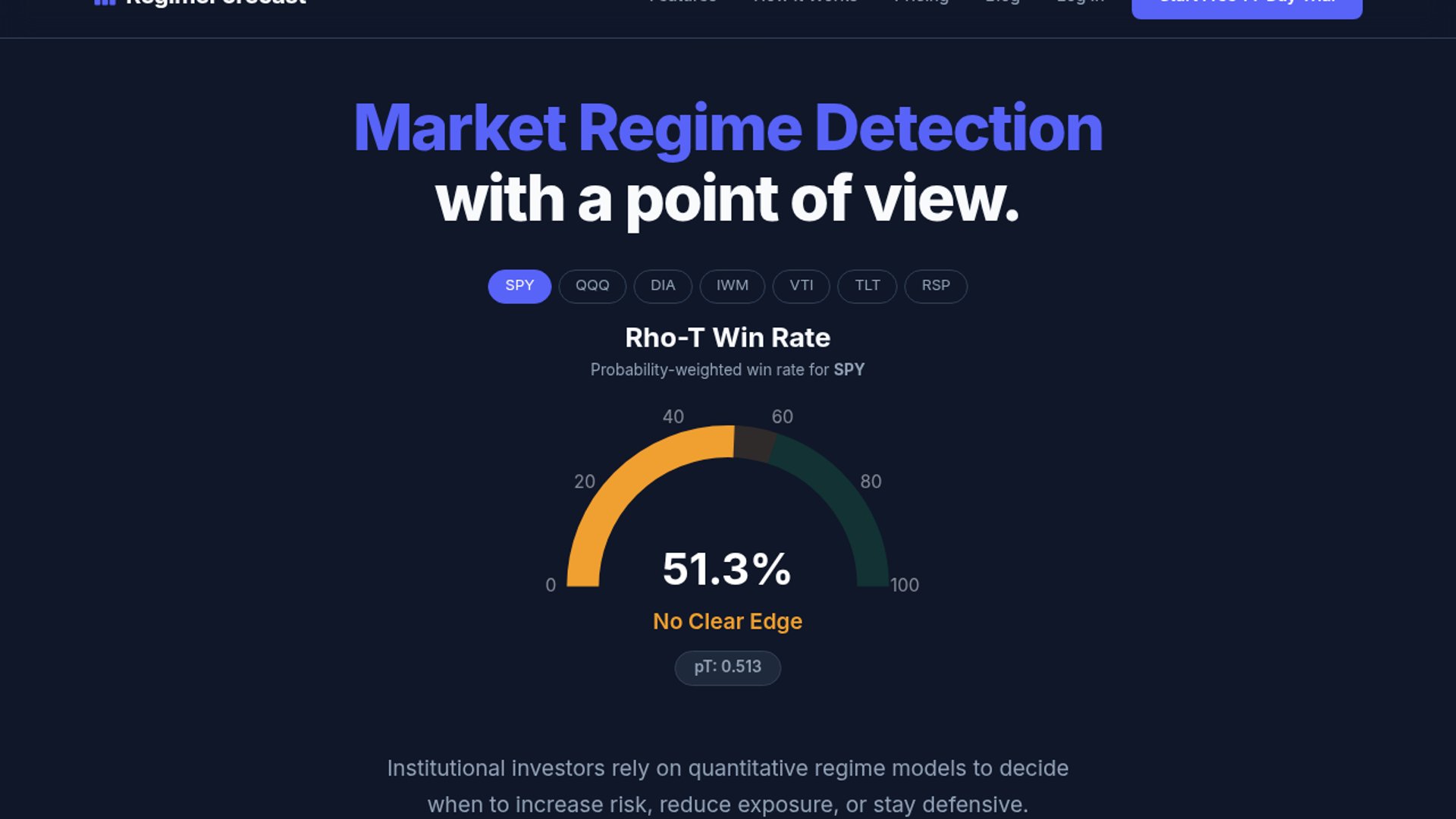 RegimeForecast is a market-regime analytics platform that uses AI and Hidden Markov Models to classify conditions like bull, neutral, bear, and high volatility in real time. It layers on forecasts, historical backtests, alerts, and an API so systematic traders can adapt exposure as conditions change.