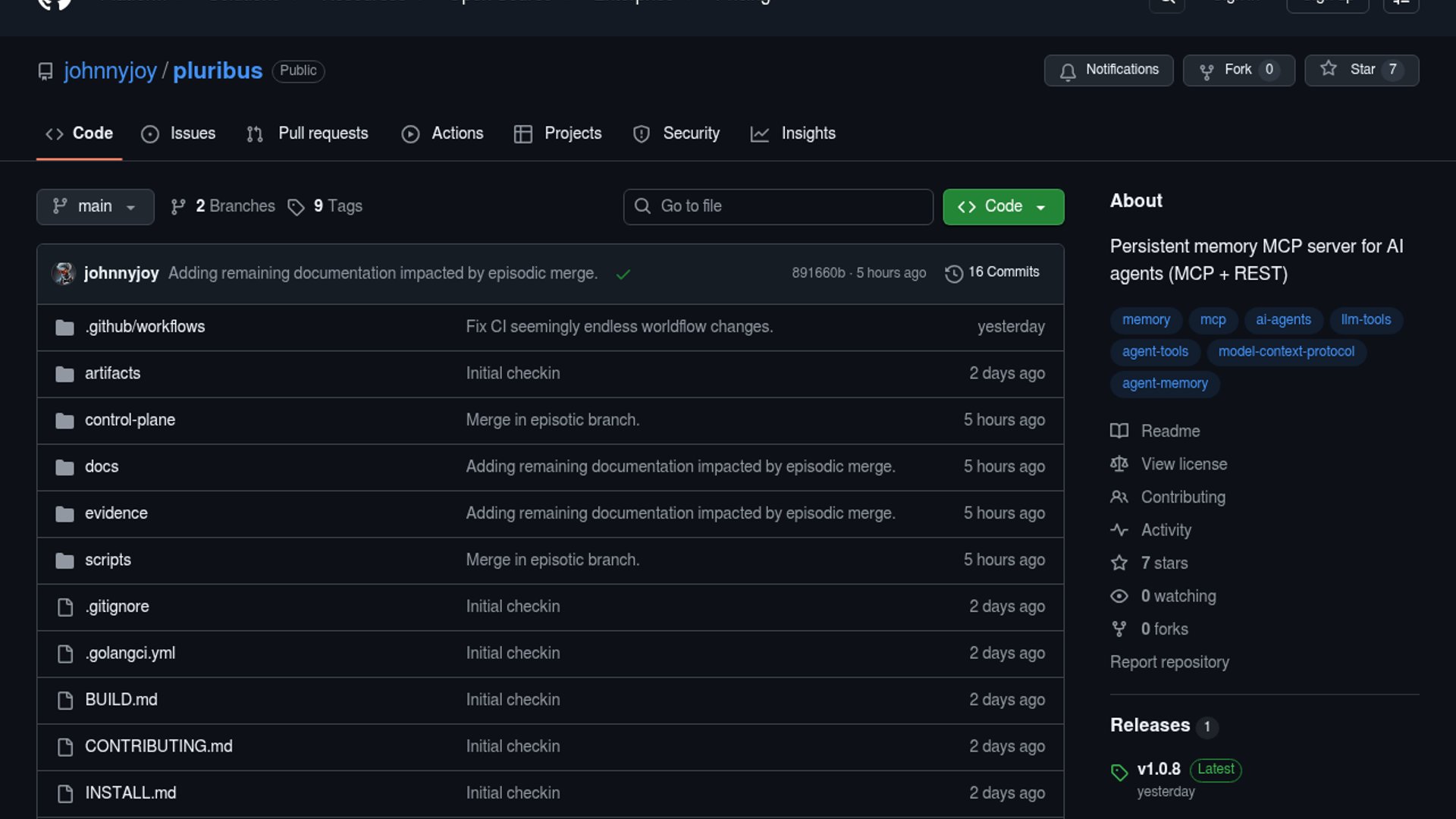 Pluribus is a Postgres-backed memory service for agents with both MCP and HTTP APIs, designed to persist constraints, decisions, patterns, and failures across sessions. It runs locally or on a LAN and lets multiple agents share the same memory substrate.