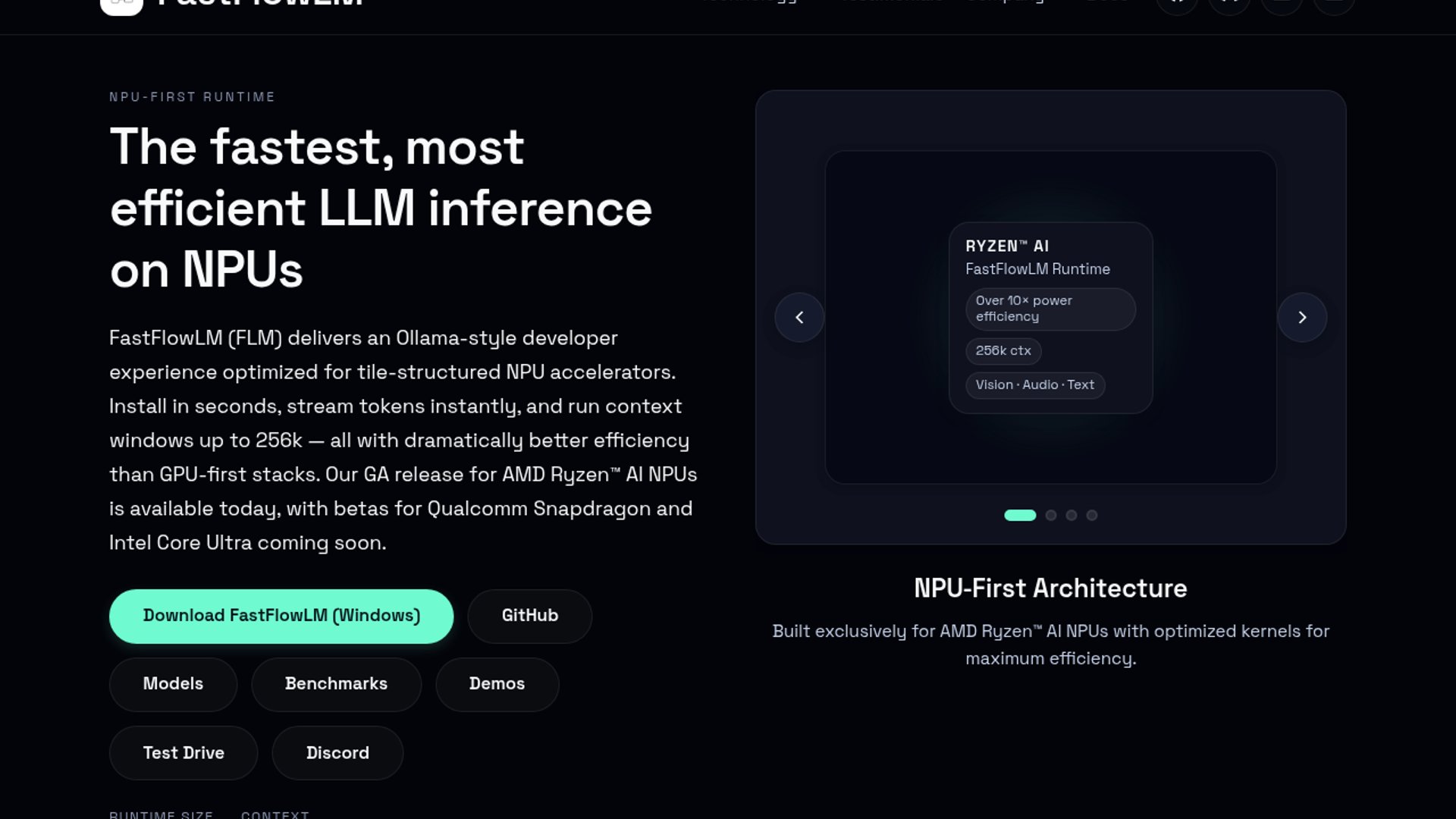 - –FastFlowLM already targets AMD XDNA2 NPUs, including Strix Halo, and claims NPU-first inference with long-context support and low power draw