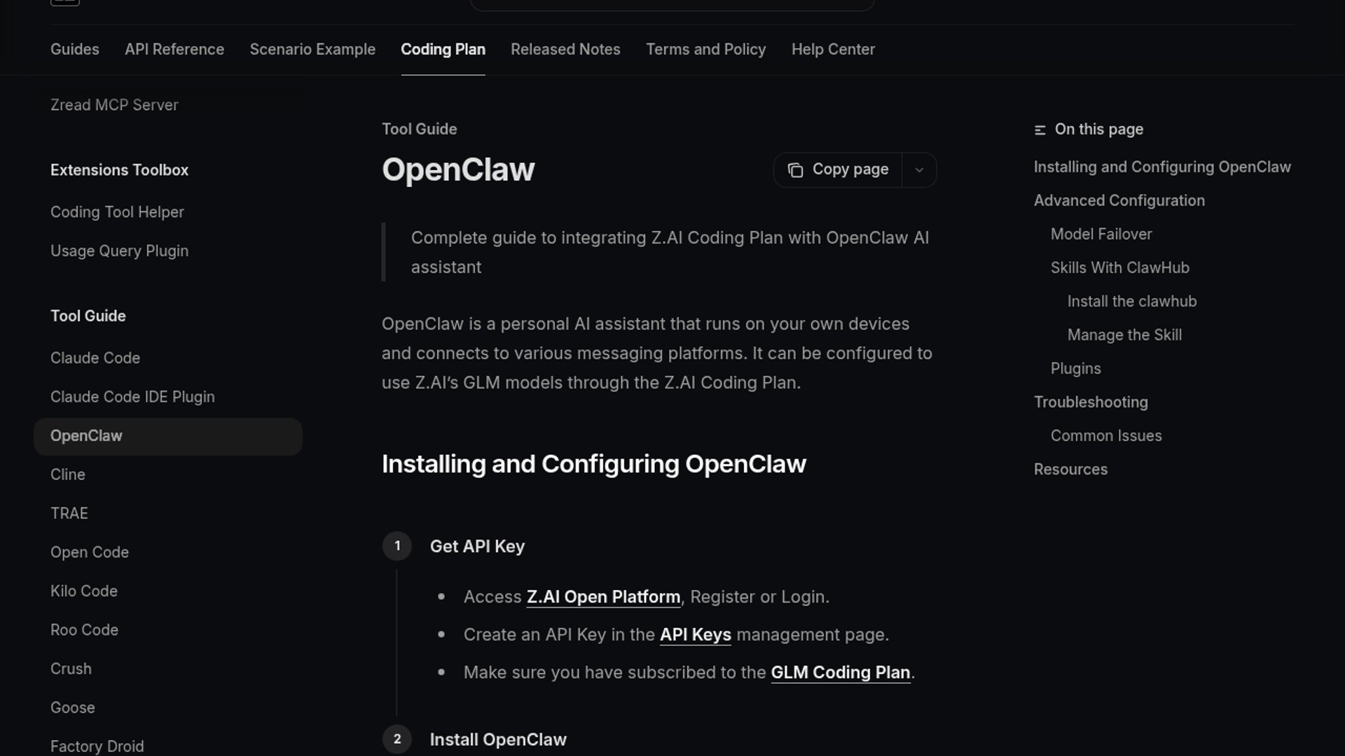 - –The docs outline GLM provider setup plus fallback chains (`glm-5` to `glm-4.7`, `glm-4.6`, `glm-4.5-air`) for reliability.