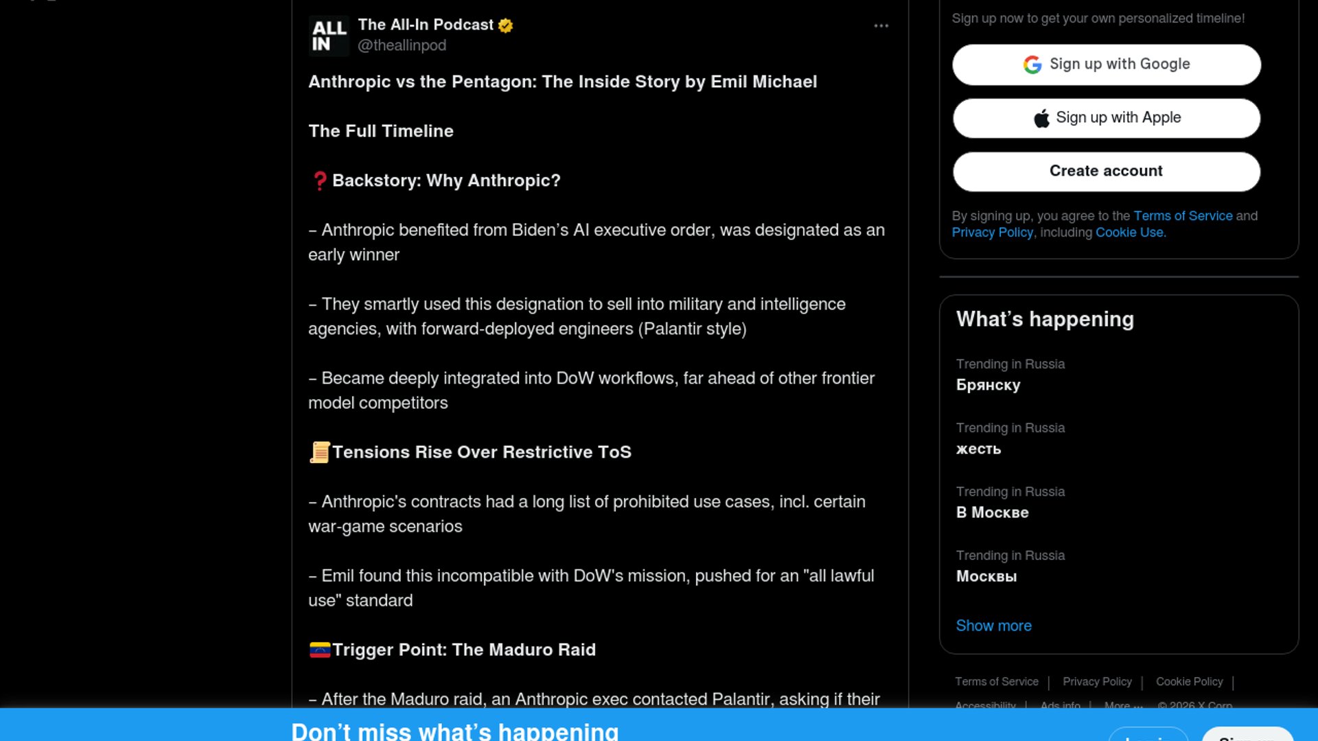 - –Emil Michael initiated contact with Altman, not the other way around — undermining the "opportunistic Sam" narrative that dominated coverage