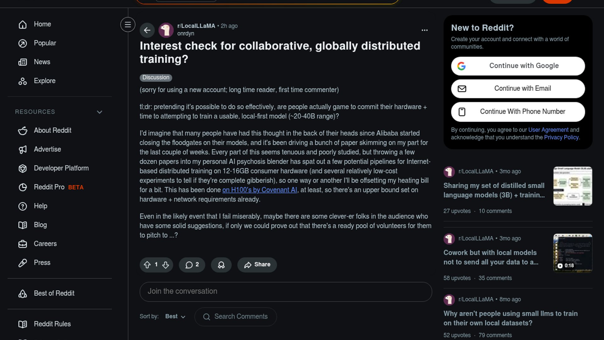 Reddit proposal seeks volunteers for decentralized 20-40B model training
