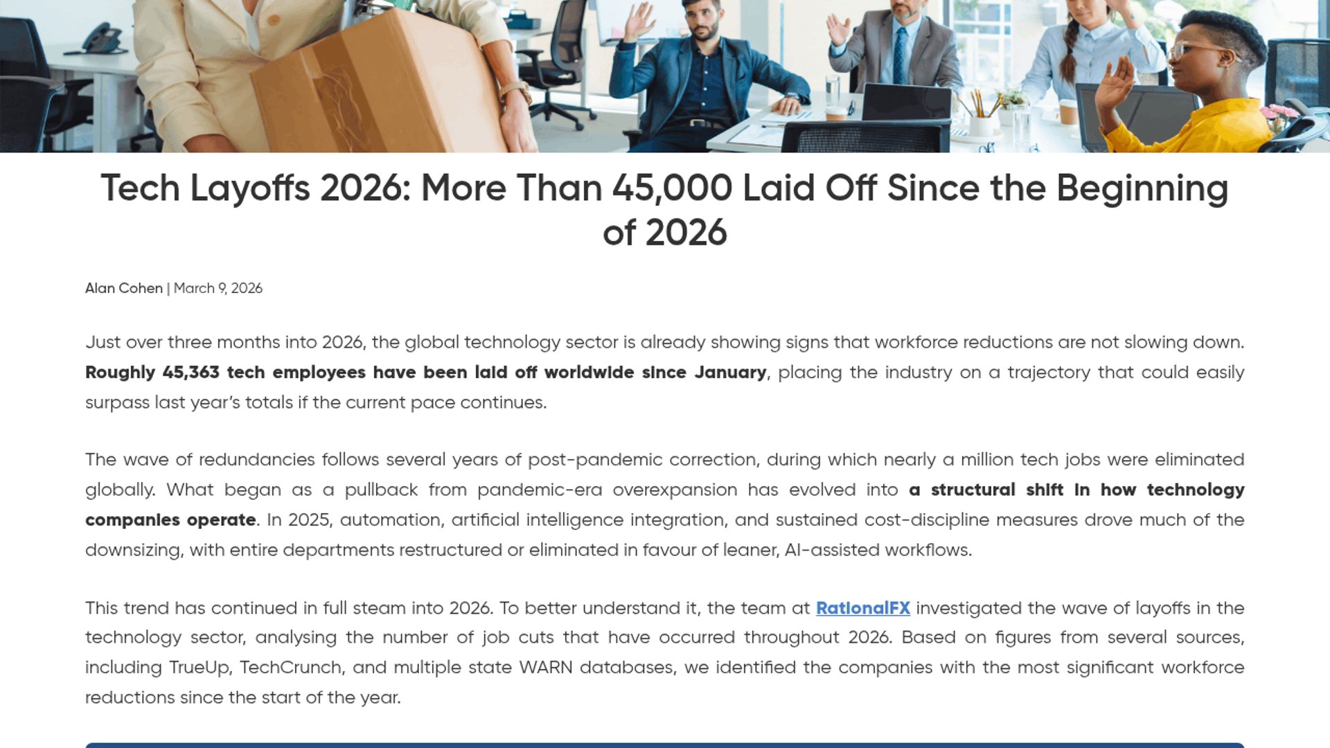 - –If current trends hold, 2026 layoffs could hit 264,730, exceeding 2025's 245,000 — the "adjustment period" narrative is increasingly hard to sustain