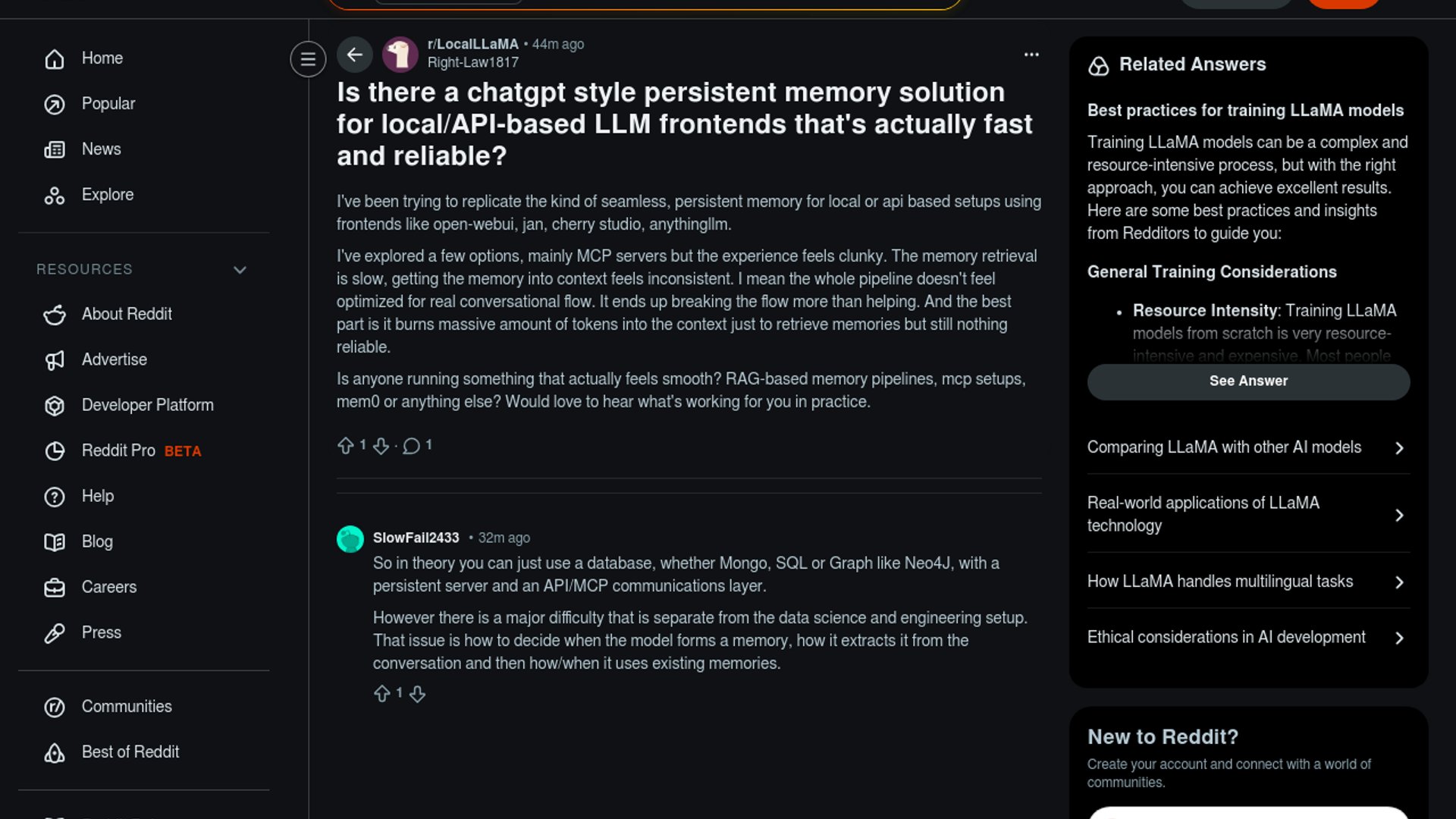 Local LLM builders still lack smooth memory