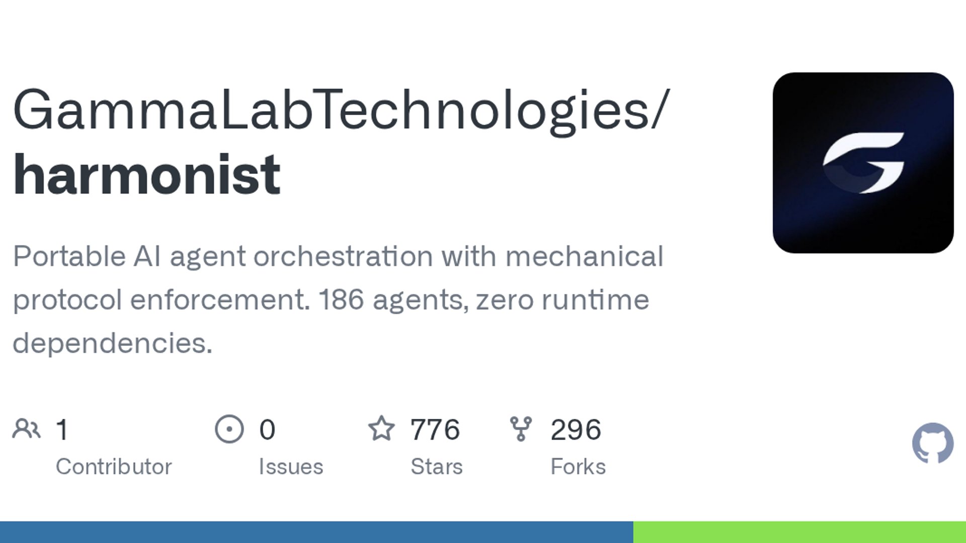 Developed by GammaLabTechnologies, Harmonist is a portable AI agent orchestration framework featuring 186 curated domain specialists. Distinct from other frameworks, it requires zero runtime dependencies, operating entirely on standard Python and Bash scripts. Instead of relying on the LLM to follow rules, Harmonist uses "mechanical protocol enforcement" through IDE-level hooks (like in Cursor) to enforce strict rules, review gates, and memory schemas, ensuring reliable and predictable agent behavior.