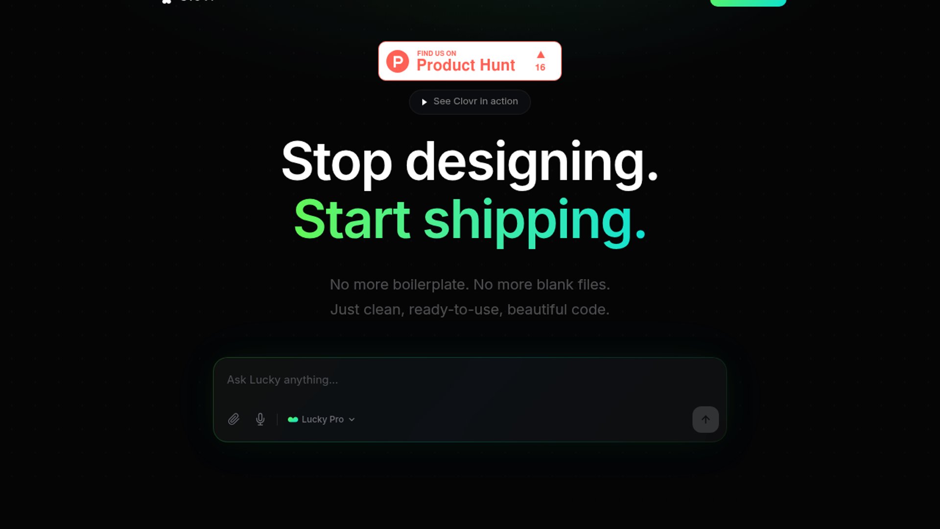 Clovr is a launch-day AI tool for generating ready-to-use frontends from plain-language prompts. It focuses on producing structured Next.js projects with reusable components, routing, and sensible defaults instead of a single-file code dump, and it can export the code or hand it off into a GitHub repository so developers can keep building.
