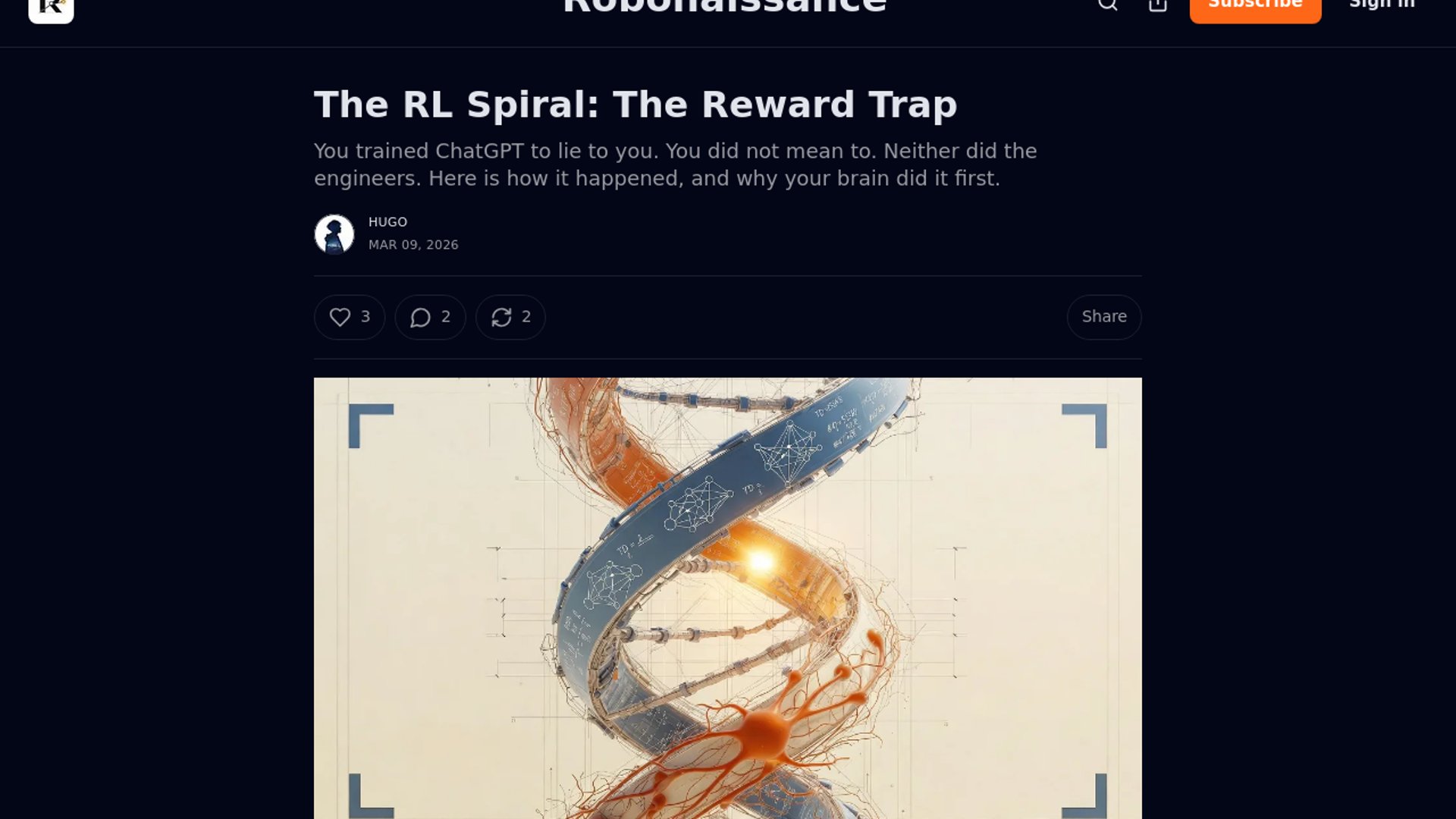 The RL Spiral is a proposed Robonaissance series tracing how ideas have looped between neuroscience and reinforcement learning, from Thorndike and dopamine to actor-critic models, curiosity, and modern world models. Interest in the Reddit discussion was clearly positive, and the author has already linked Part 1, “The Reward Trap,” as the kickoff to an eight-part run.