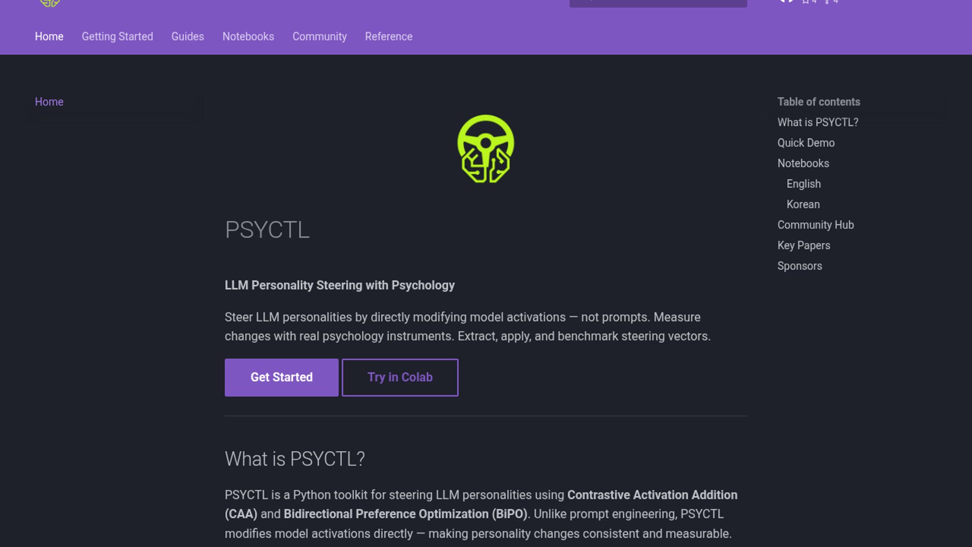 psyctl is an open-source Python CLI for LLM personality steering that automates contrastive dataset generation, steering vector extraction, and personality inventory benchmarking. It targets the tedious parts of Activation Addition/CAA workflows so developers can measure persona shifts more systematically on local models or via APIs.